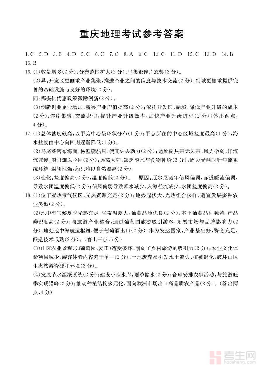本资料适用于重庆好教育联盟成员校及参与本次联考的2026届高三学生、地理学科教师及备考指导人员,通过对答案的参考与分析,能够有效提升阶段检测的反馈效率,优化备考规划的针对性,为高三下学期地理学科的系统复习与能力提升奠定基础。