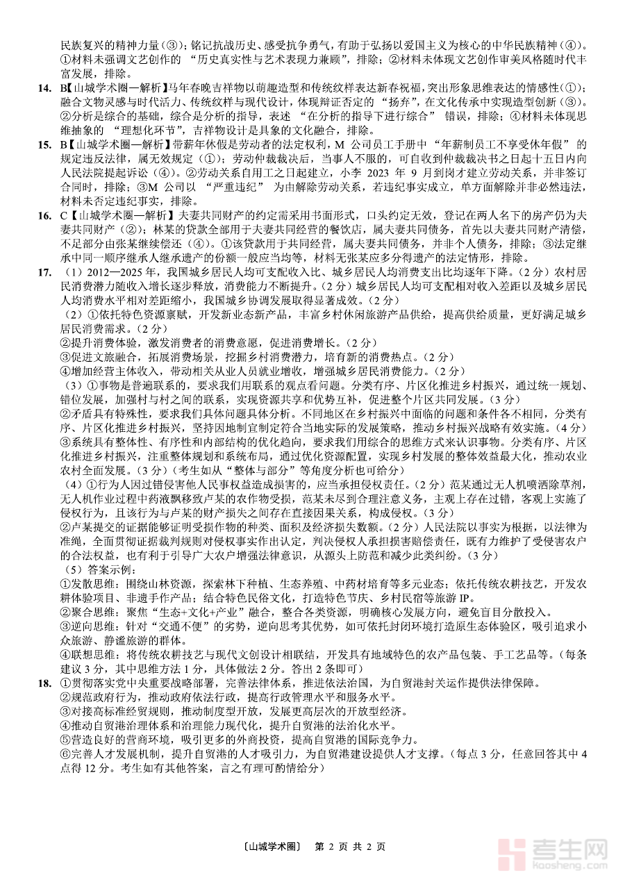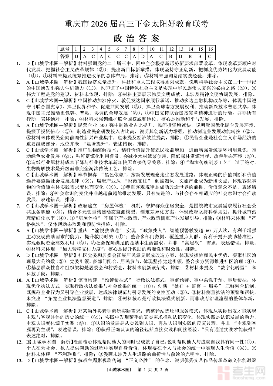 此答案适用于2026届重庆地区高三学生、政治学科教师及教育研究者,能有效辅助阶段学习效果评估,支持教师优化教学方案,助力教育研究者把握区域备考动态,为高三后期政治学科备考提供方向指引与参考依据。