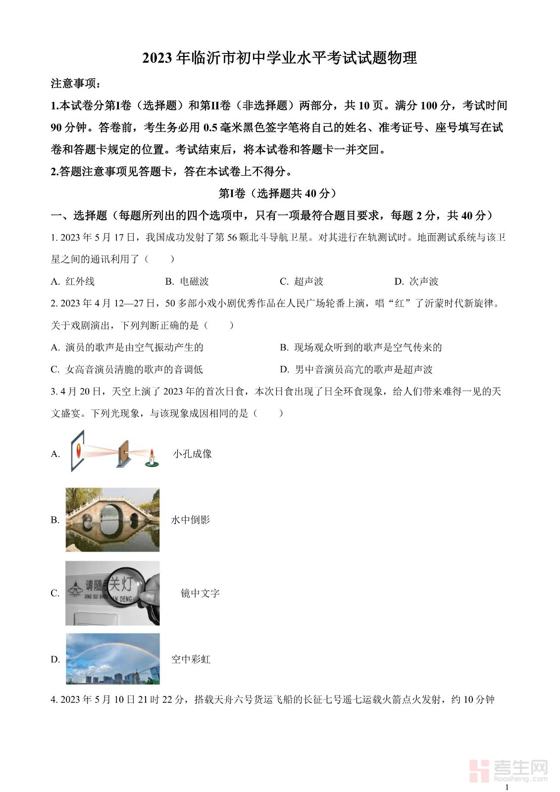 2023年山东省临沂市中考物理试题(原卷版)