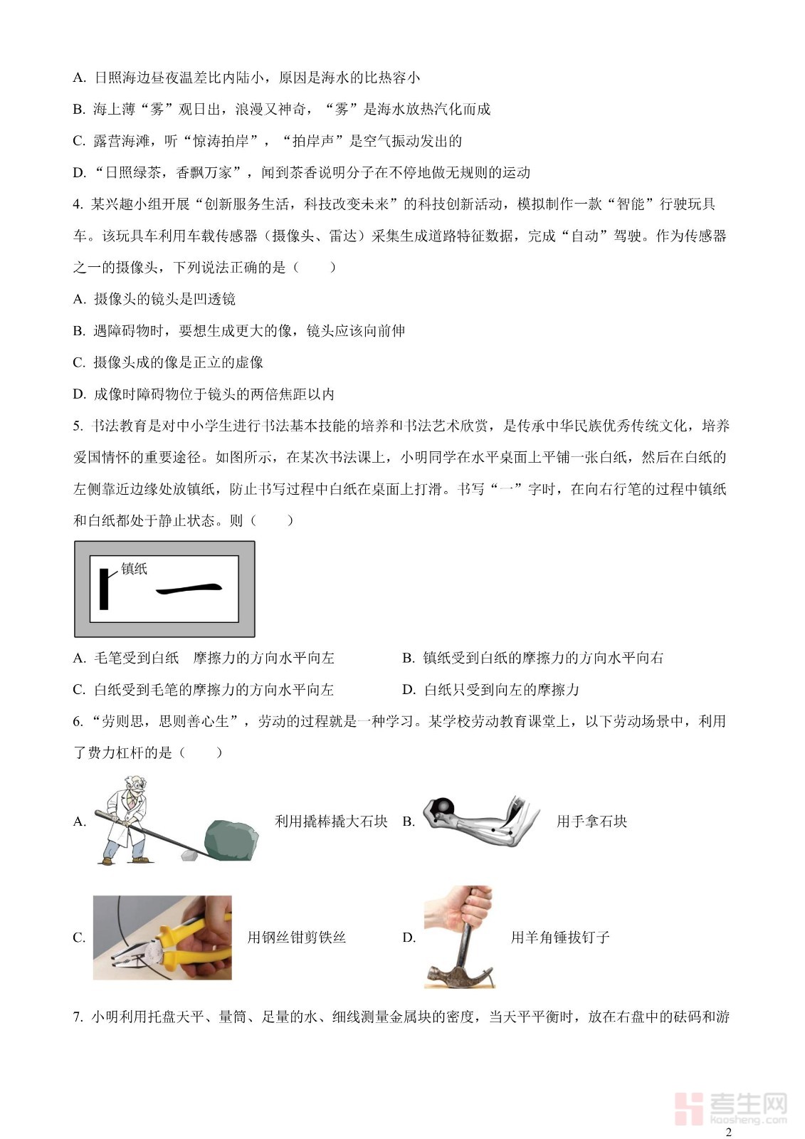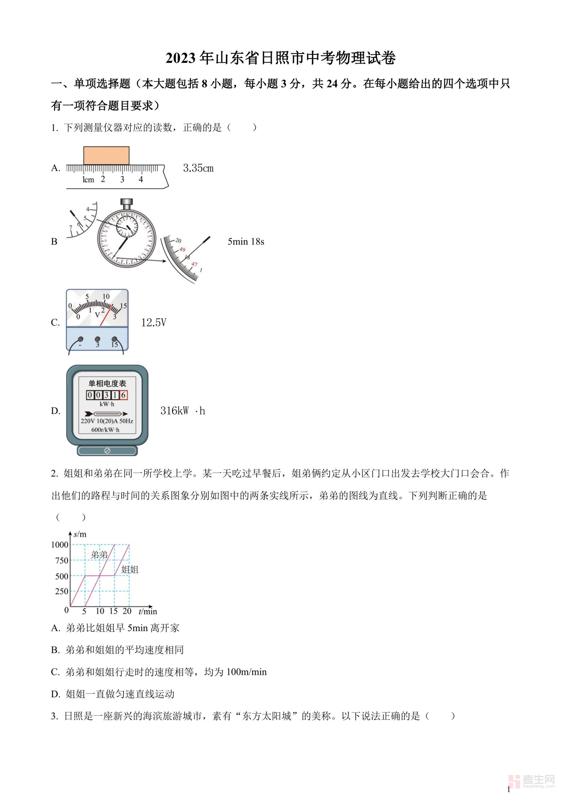 2023年山东省日照市中考物理试题(原卷版)