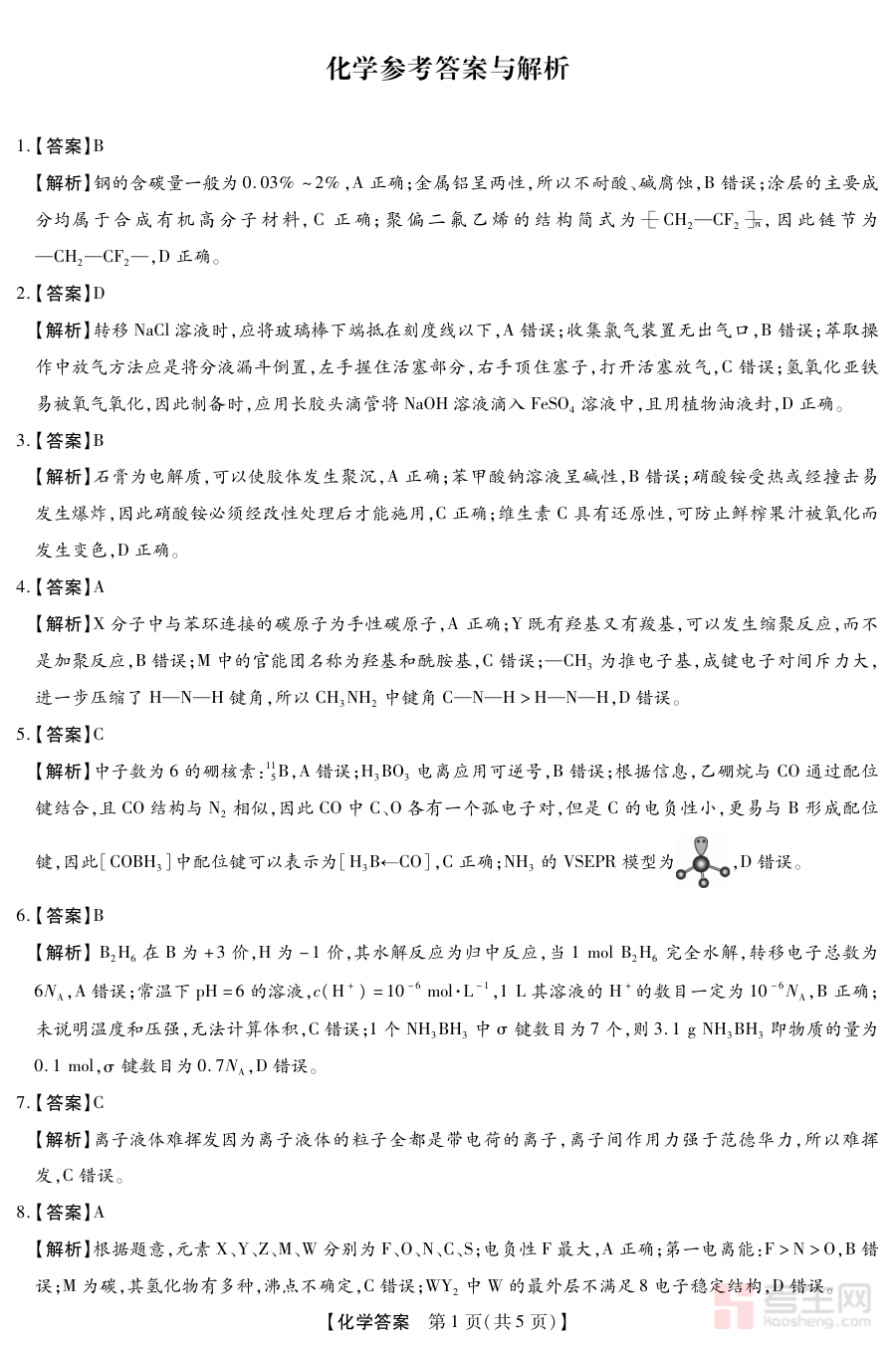 作为开学调研检测的核心配套资料之一,该答案可支持学生完成检测结果的核对工作,帮助其清晰认知自身在化学学科知识掌握、解题思路等方面的优势与不足,为后续高三化学学习计划的制定与调整提供实际依据;同时也能辅助教师开展学情诊断工作,通过分析学生对答案的反馈情况,把握班级整体的学习状态与共性问题,从而优化教学策略与辅导重点。