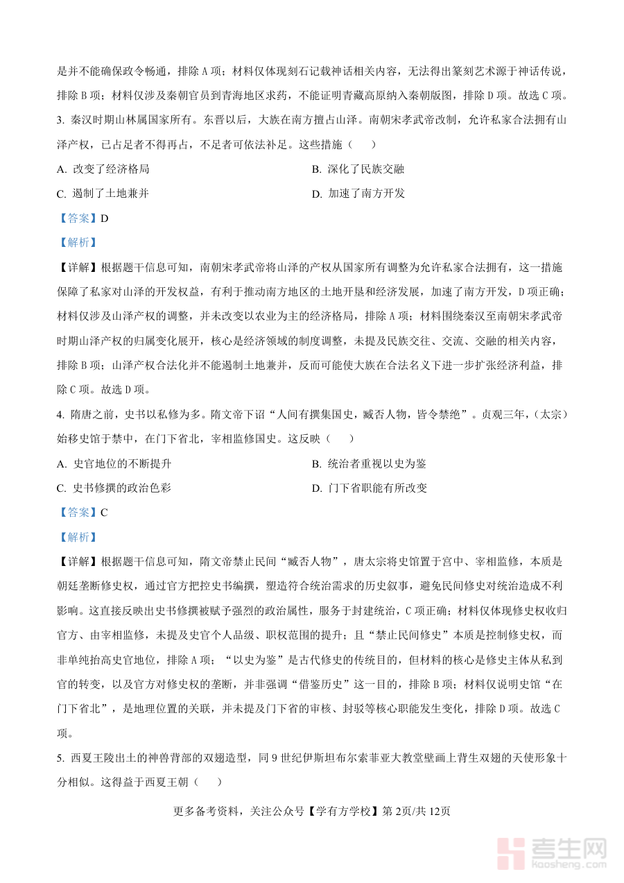 这份资料可用于辅助师生对本次调研测试的历史学科作答情况进行系统分析,帮助教师精准把握学生在历史知识掌握、学科思维应用等方面的实际状况,为后续教学内容调整与备考规划提供数据支撑,同时也能让学生通过对照答案清晰认知自身学习短板与改进方向。