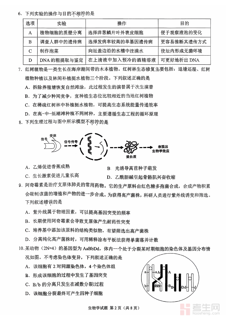 这份试卷可用于高三师生进行精准学情诊断,帮助学生识别自身在生物学科学习中的薄弱环节与优势领域,同时为教师提供班级整体学习状况的数据支撑。借助试卷的检测结果,师生能够更科学地制定后续备考策略,调整学习重点与教学安排,确保备考过程更具针对性和有效性。作为第二次质量调研测试,它在高三备考周期中起到承上启下的关键作用,衔接前期基础复习与后期强化提升阶段的过渡。