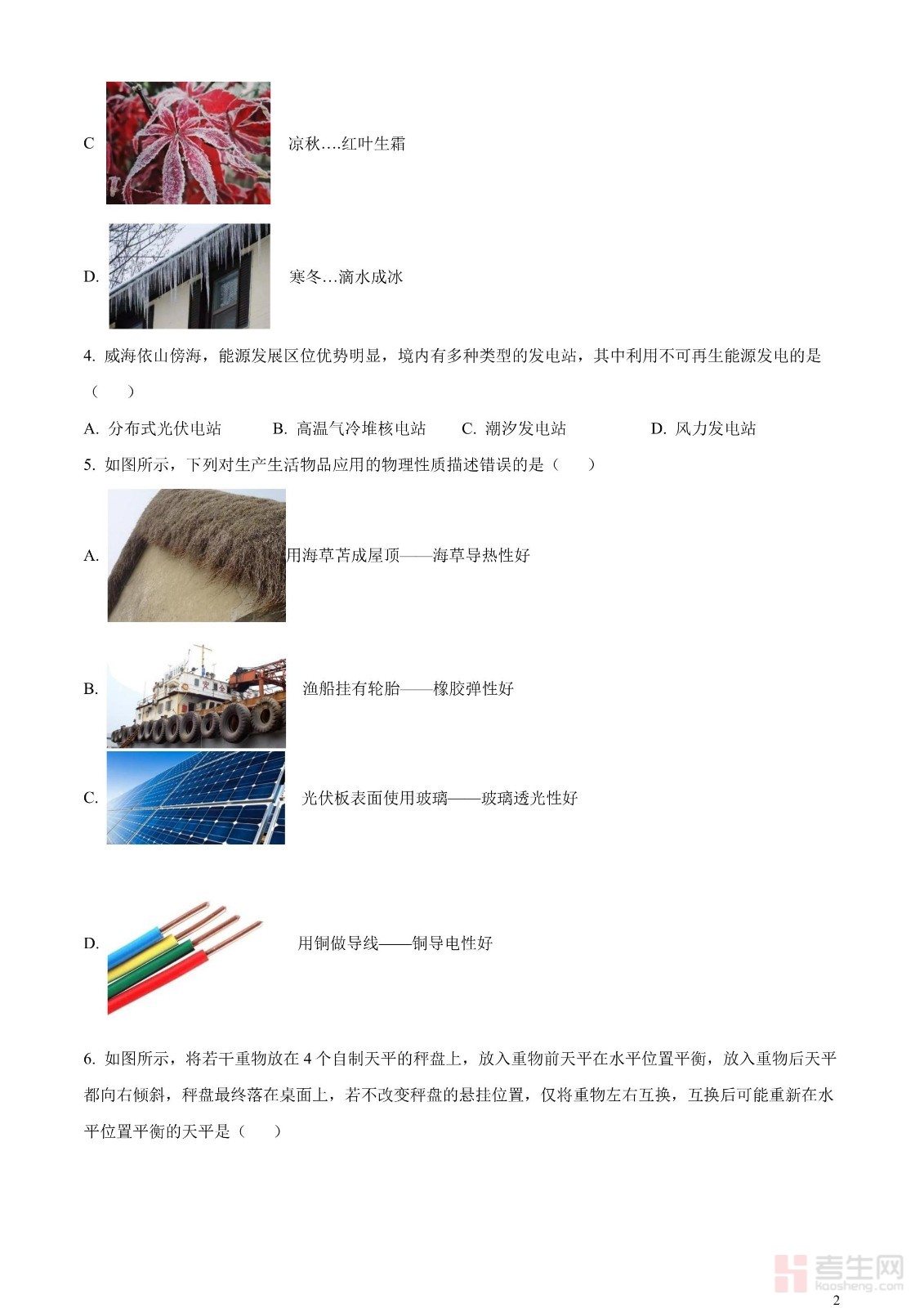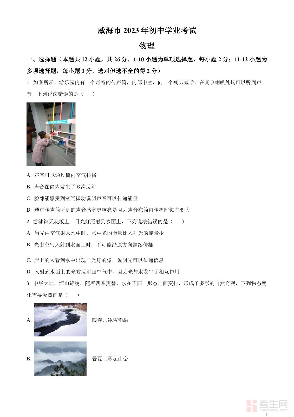 2023年山东省威海市中考物理试题(原卷版)