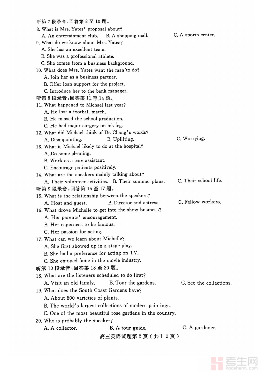 该资料主要用于高三学生的学情诊断与阶段学习效果评估,帮助教师与学生精准把握当前英语学习的优势与不足。通过参与本次模拟考试,学生可直观了解自身在英语学科学习中的薄弱环节与提升空间,为后续的针对性复习计划制定提供依据;教师则能依据考试反馈的整体学情数据,调整教学策略与复习重点,确保教学内容与学生实际需求相契合,提升复习效率。
