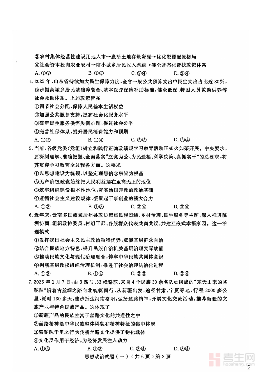 《聊城市2026年普通高中学业水平等级考试模拟卷 政治》是针对山东省聊城市区域内2026年普通高中学业水平等级考试政治科目的标准化备考资料。该资料紧密围绕当地学业水平等级考试的相关要求设计,能够帮助考生提前熟悉考试的整体框架与命题导向,为后续的系统复习提供明确方向,是适配聊城市本地考试情境的重要备考资源。