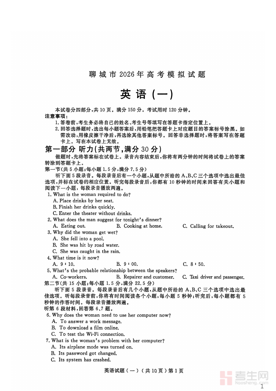此模拟卷的核心适用人群为聊城市2026届高中毕业生以及承担高中英语教学任务的教师;对于学生而言,完成该模拟卷不仅能强化对考试节奏的把控能力,还能通过模拟练习积累应试经验,为正式考试做好充分准备;对于教师而言,则可利用该资料开展阶段性检测,全面掌握班级学生的学习动态与整体水平,从而更好地指导学生进行高效备考。