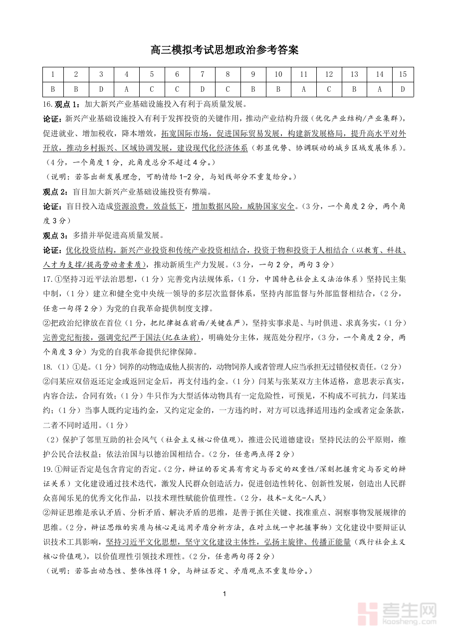 《淄博市2025-2026学年度高三模拟考试 政治答案》是针对淄博市区域内2025至2026学年度高三阶段政治学科模拟考试的配套答案资料,其核心定位是服务于该学年度高三学生政治学科的模拟测试环节,为考生和教学者提供对应考试的标准化参考答案支撑,帮助相关主体准确把握该次模拟考试的评分标准与答题方向。