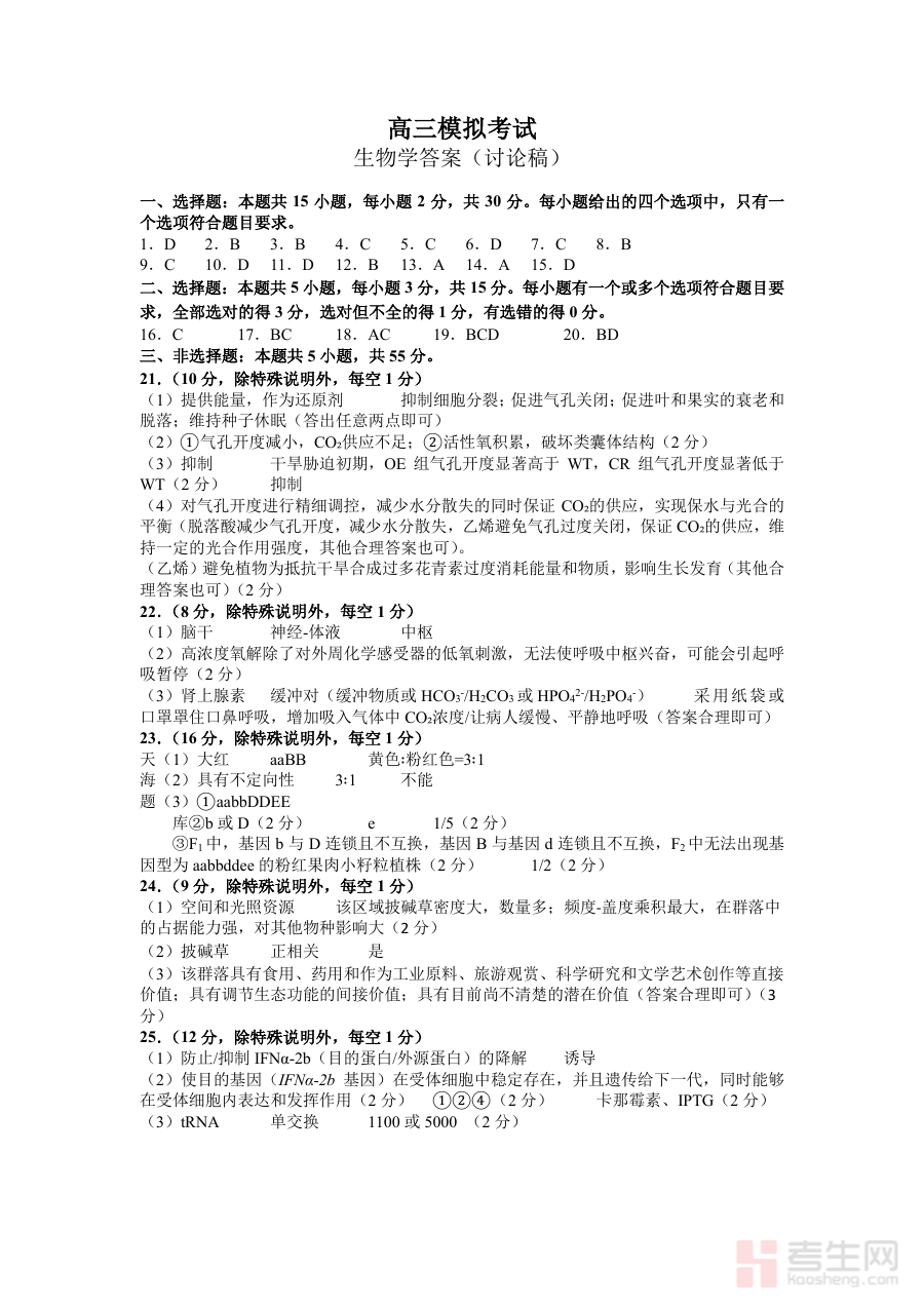 《淄博市2025-2026学年度高三模拟考试 生物答案》是淄博市针对2025-2026学年度高三学生组织的模拟考试对应的生物学科答案资料,属于区域性高三阶段标准化模拟考试的配套资源,为该阶段生物学科备考提供直接参考依据,助力师生对接区域考试要求与学科能力培养目标。