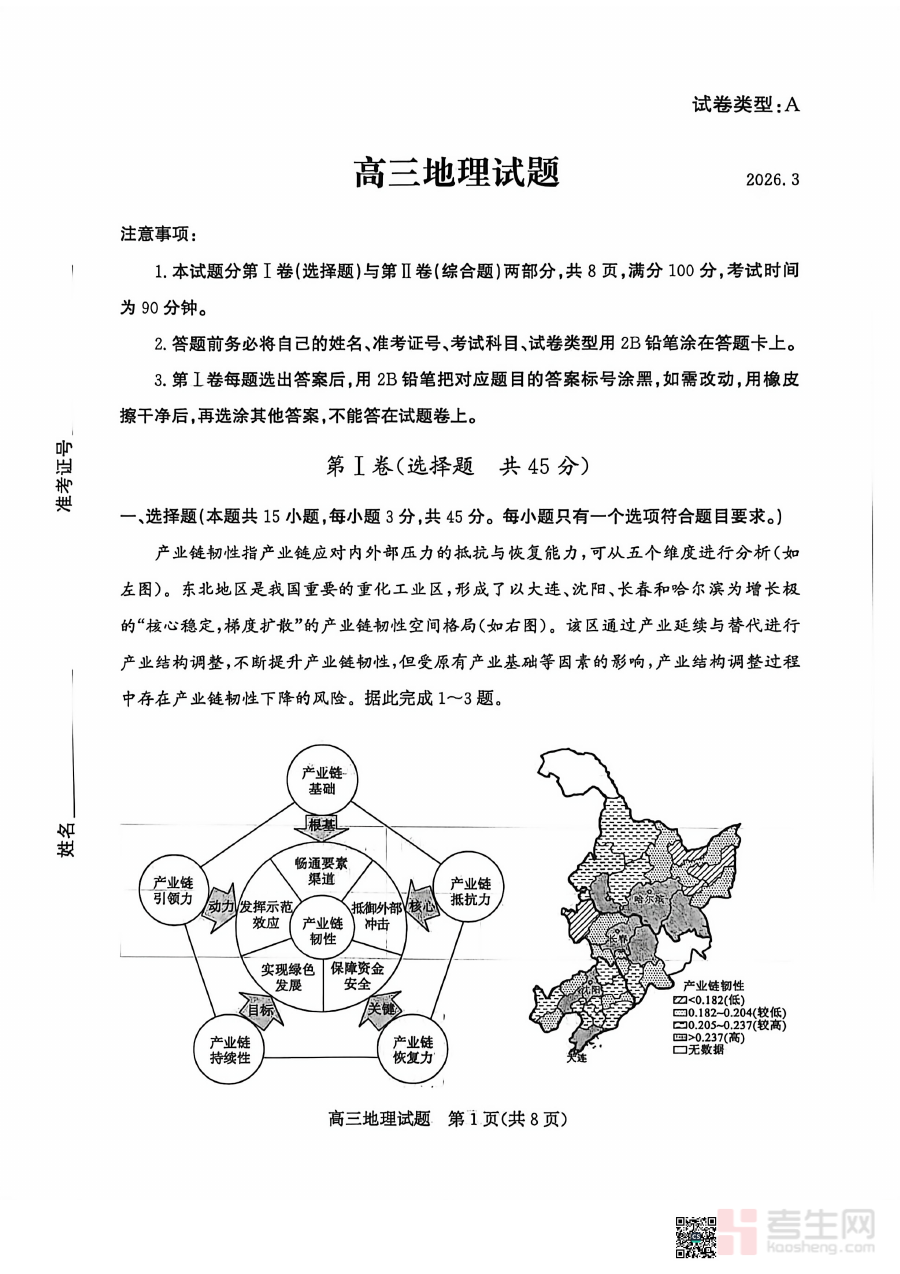 《山东省滨州市2026届高三年级一模考试 地理》是针对山东省滨州市2026届高三学生地理学科的重要备考资料,对应考试为高三年级第一次模拟考试,属于高考前关键的阶段性测试,旨在帮助学生提前熟悉高考地理的考查框架与应试节奏,为后续系统复习提供明确方向与参考依据。