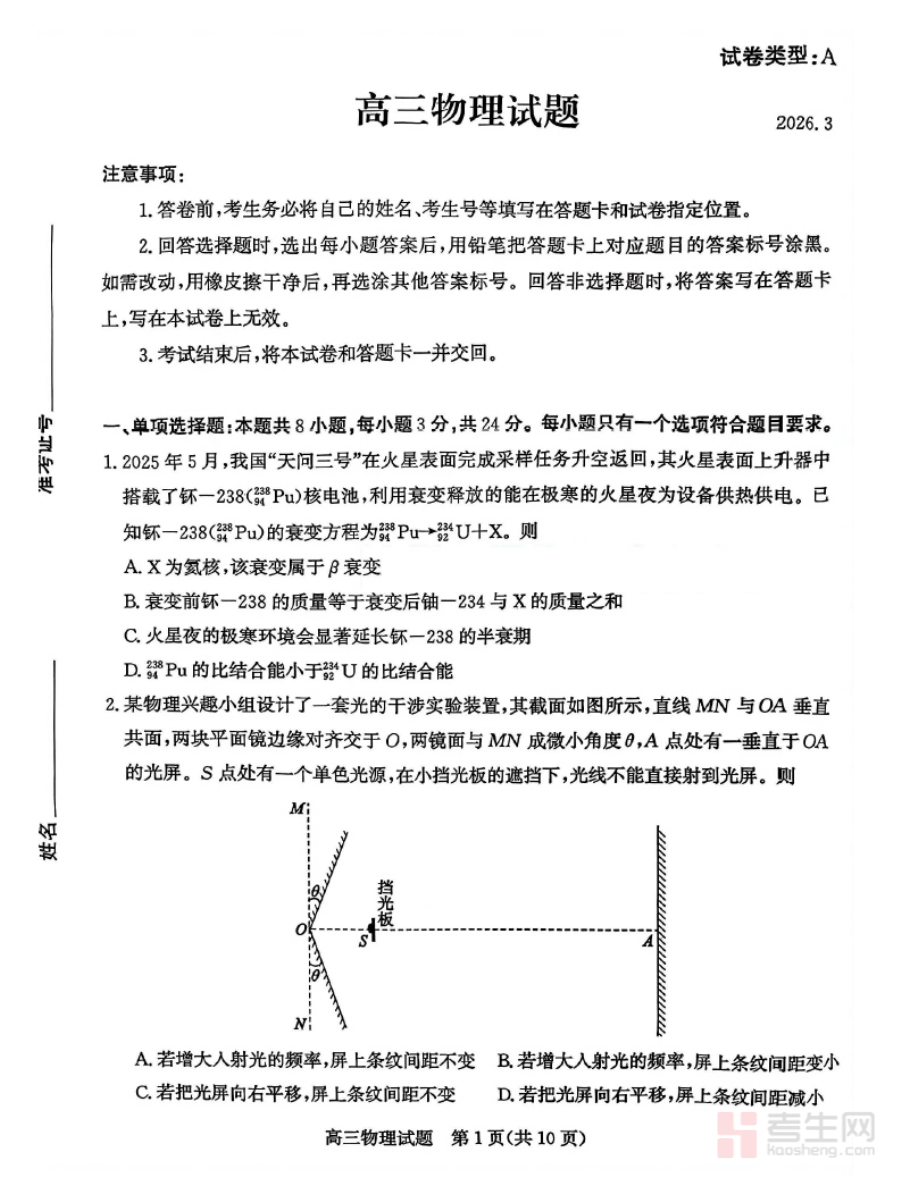 《山东省滨州市2026届高三年级一模考试 物理》是针对山东省滨州市2026届高三学生物理学科的阶段性模拟考试资料,紧密贴合当地高三物理教学进度与区域考试命题特点,旨在为学生搭建与正式一模考试一致的练习场景,帮助学生提前适应考试节奏、熟悉命题思路,是高三物理备考阶段不可或缺的重要参考资料。