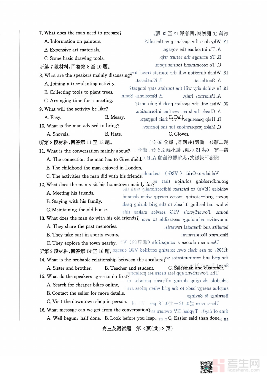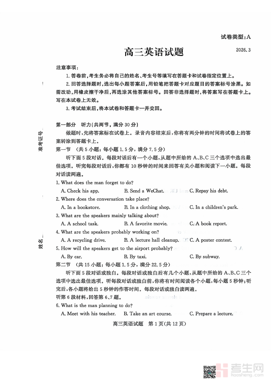 其适用对象主要为山东省滨州市2026届高三学生群体,通过参与该模拟考试或使用相关资料进行练习,学生可提升应试技巧与时间管理能力;此外,高中英语教师及区域教研人员也可将这份资料作为分析本地学生英语学习水平、把握区域高考备考方向的参考依据,助力优化教学策略与备考方案。