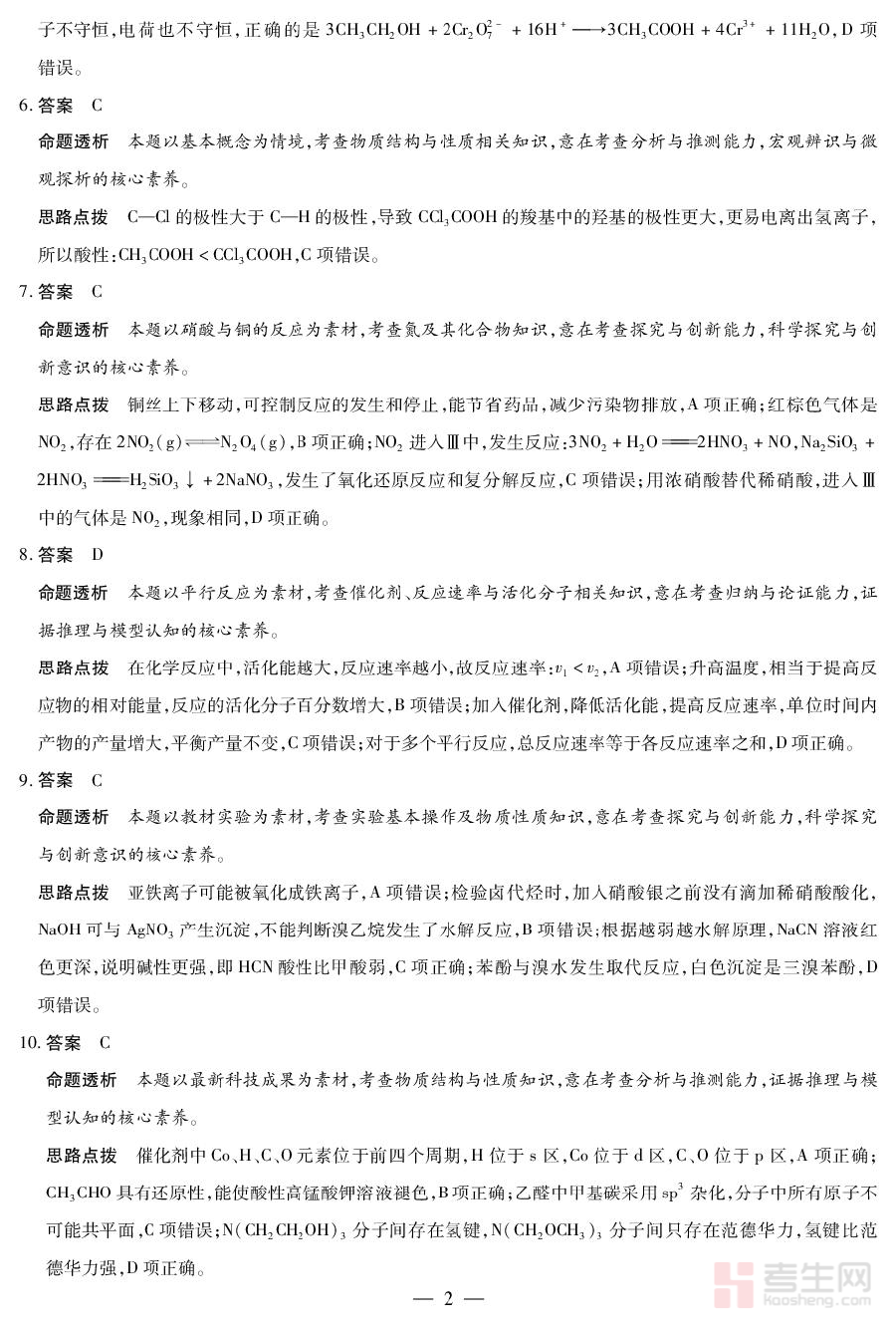 该资料可用于高三下学期化学学科的阶段性检测与学情诊断工作,帮助学生精准定位自身知识掌握中的薄弱环节,为后续个性化备考规划提供客观依据;同时,附带的详细解析能够引导学生梳理解题逻辑、掌握核心解题方法,有效提升化学知识的综合应用能力与应试技巧。