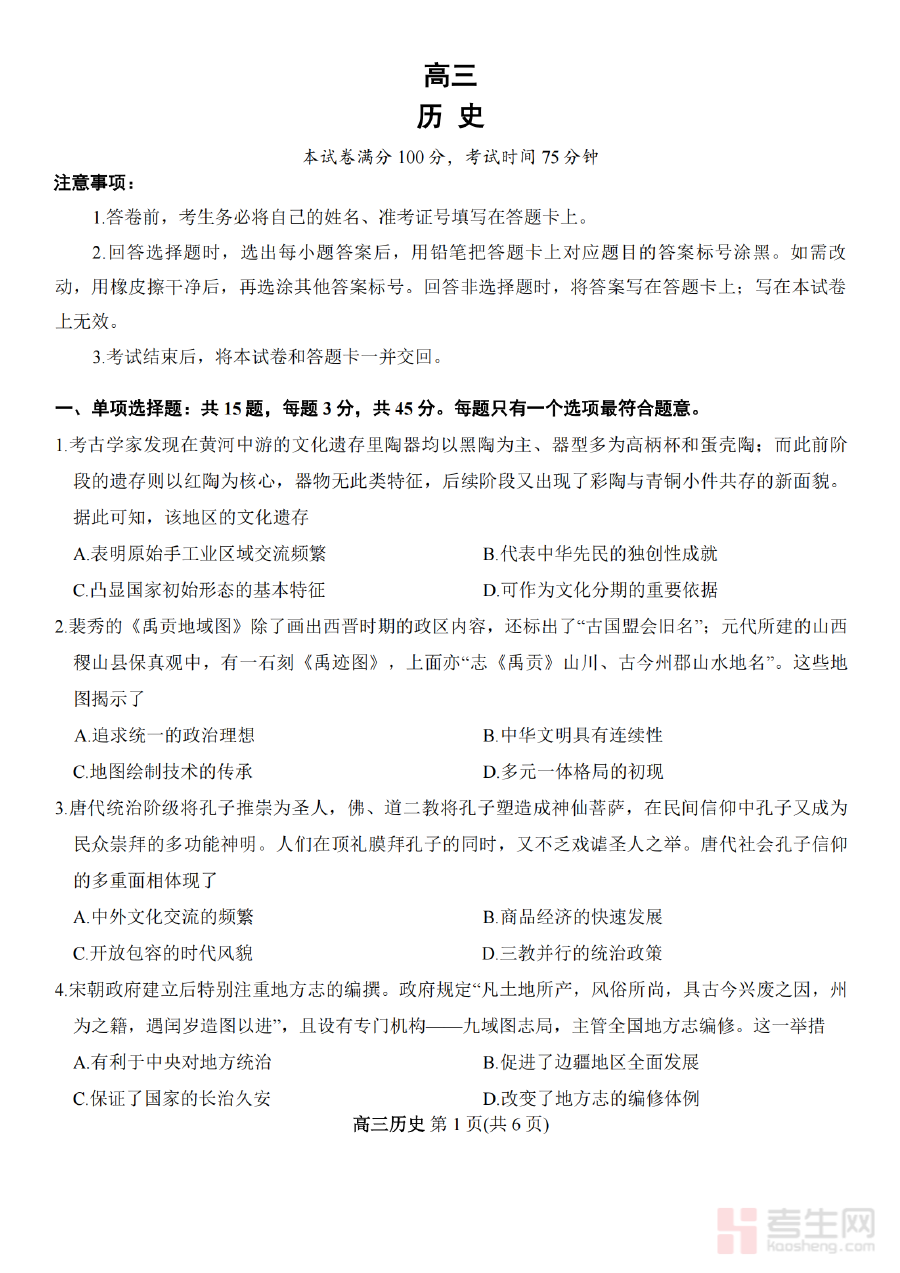 该资料可用于高三学生历史学科的阶段学情诊断,帮助考生清晰认知自身在知识掌握、解题能力等方面的短板与优势;同时为教师提供校际层面的教学效果反馈数据,便于结合联考结果优化后续复习计划,调整教学重点与策略;完整的参考答案还能辅助使用者规范答题思路,明确评分标准,提升复习的针对性与有效性。
