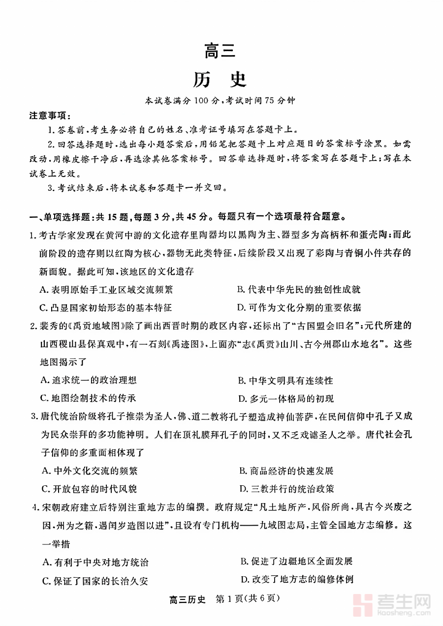 此资料的核心用途在于助力高三学生进行历史学科的阶段学情诊断,帮助学生精准识别自身在知识体系构建、解题思路形成等方面的薄弱环节;同时为教师提供区域层面的教学反馈数据,支持教师优化课堂教学内容与复习计划;对于学校而言,该联考结果可作为调整高三下学期整体备考策略的重要依据,确保复习安排的科学性与针对性,提升整体备考效率。