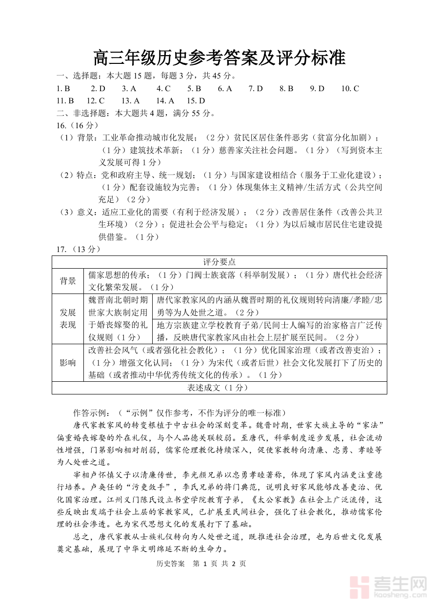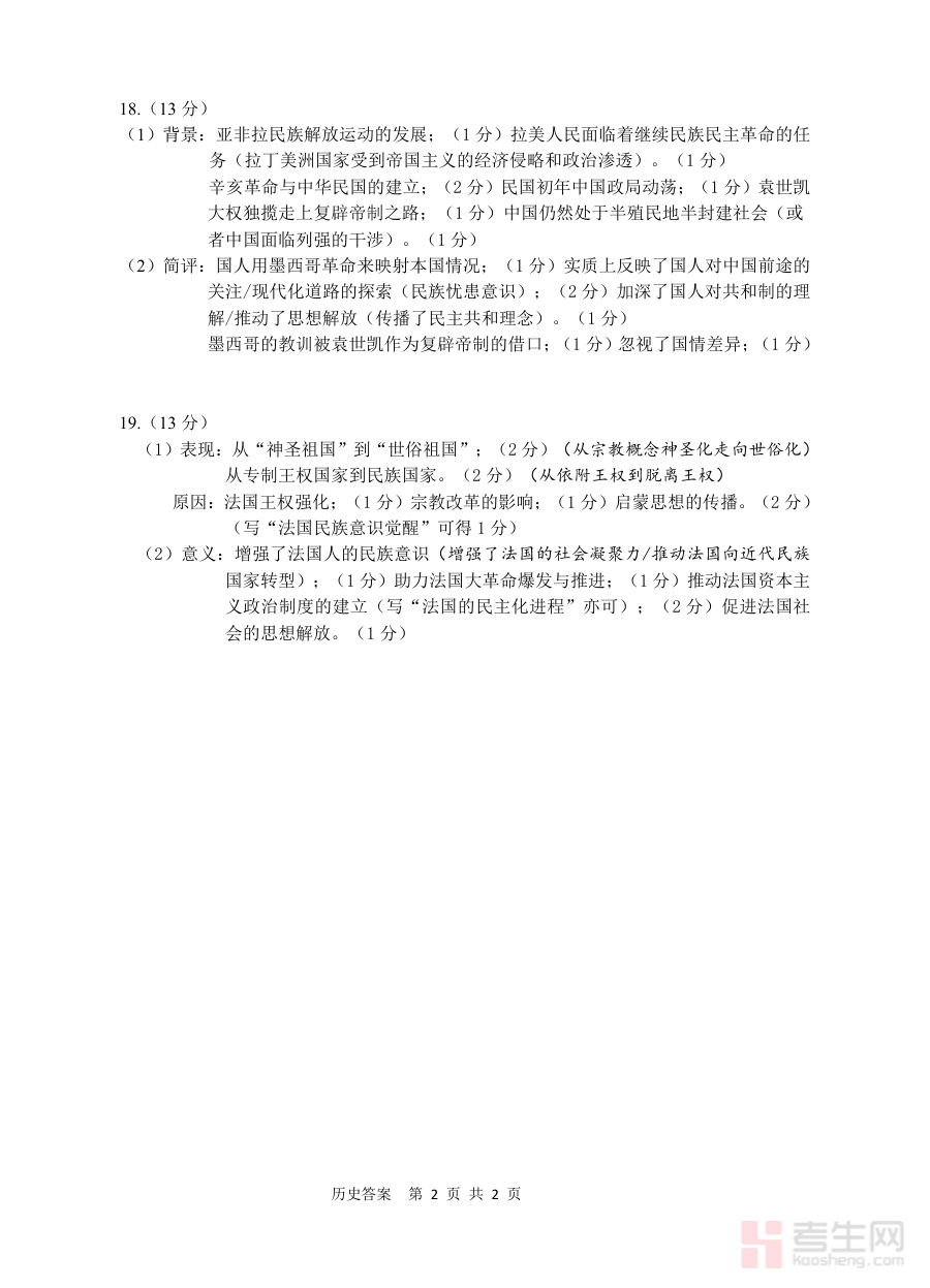 该资料可帮助学生核对考试作答情况,明确自身历史知识掌握的薄弱环节,为后续个性化备考规划提供方向;同时辅助教师了解学生群体的整体学习状况,针对性调整教学策略,提升阶段复习的靶向性与有效性。