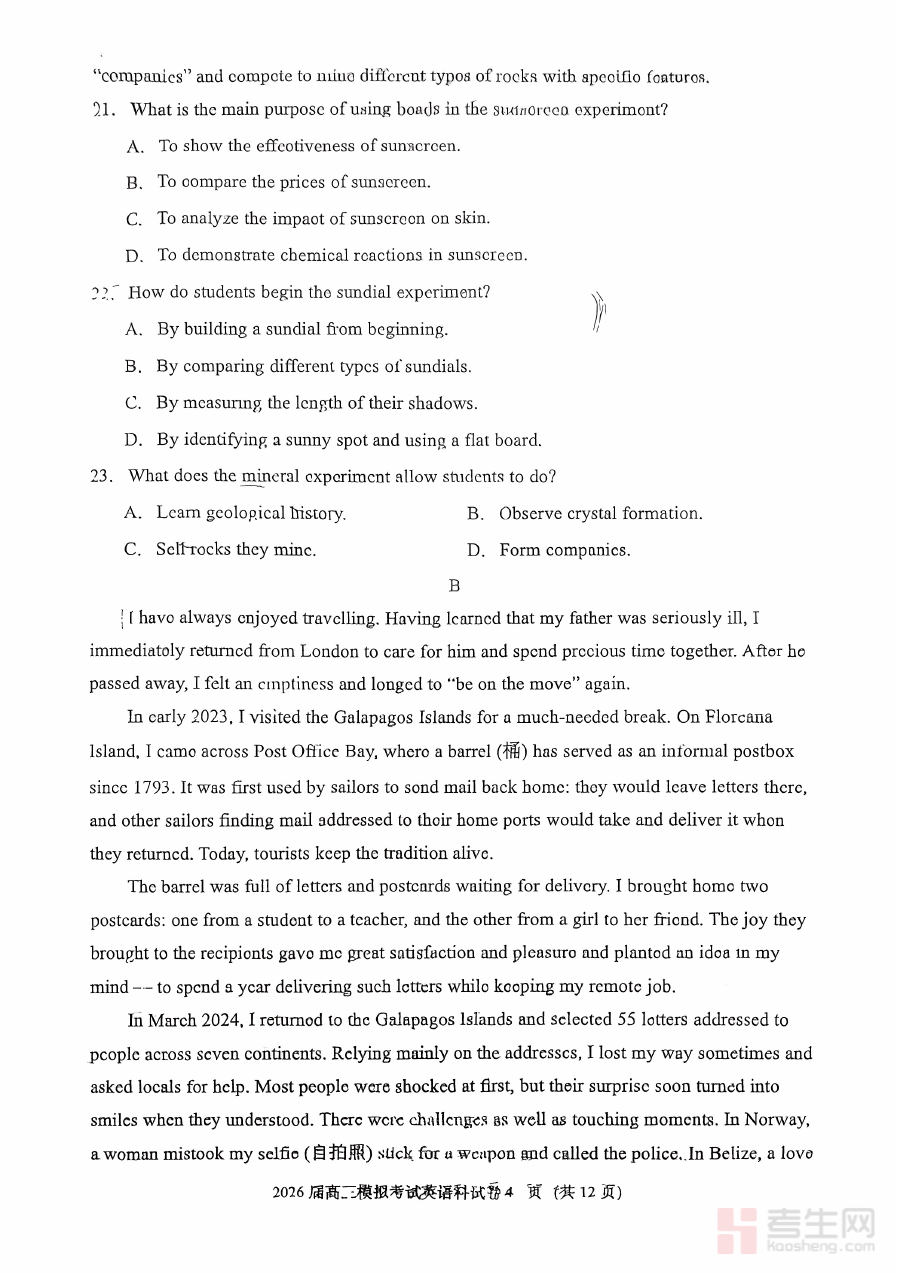 此资料主要适用于2026届参与吉林五校联考的高三学生及英语教师群体,作为阶段检测与备考指导的重要资源,能够有效助力学生明确自身英语学习的优势与不足,辅助教师优化复习方案,对提升整体备考效率与针对性具有积极意义。