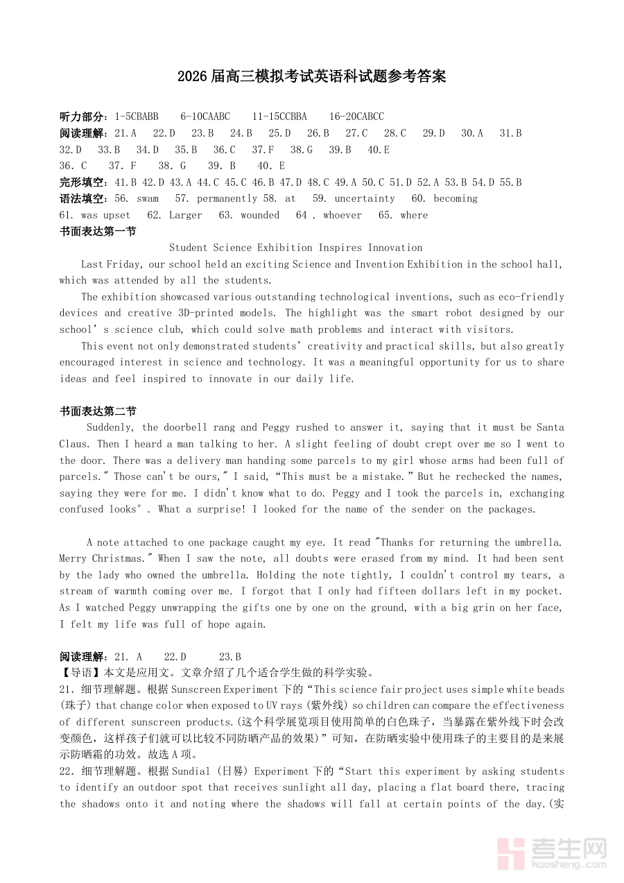 此资料可用于考生完成联考英语试卷后核对答题结果,明确自身答题的对错情况,帮助识别知识掌握的薄弱模块;同时也能为教师提供统一的评分标准与答题参考方向,便于快速完成阅卷工作,高效分析学生群体的整体答题状况,为后续教学策略调整和备考指导提供数据支持。