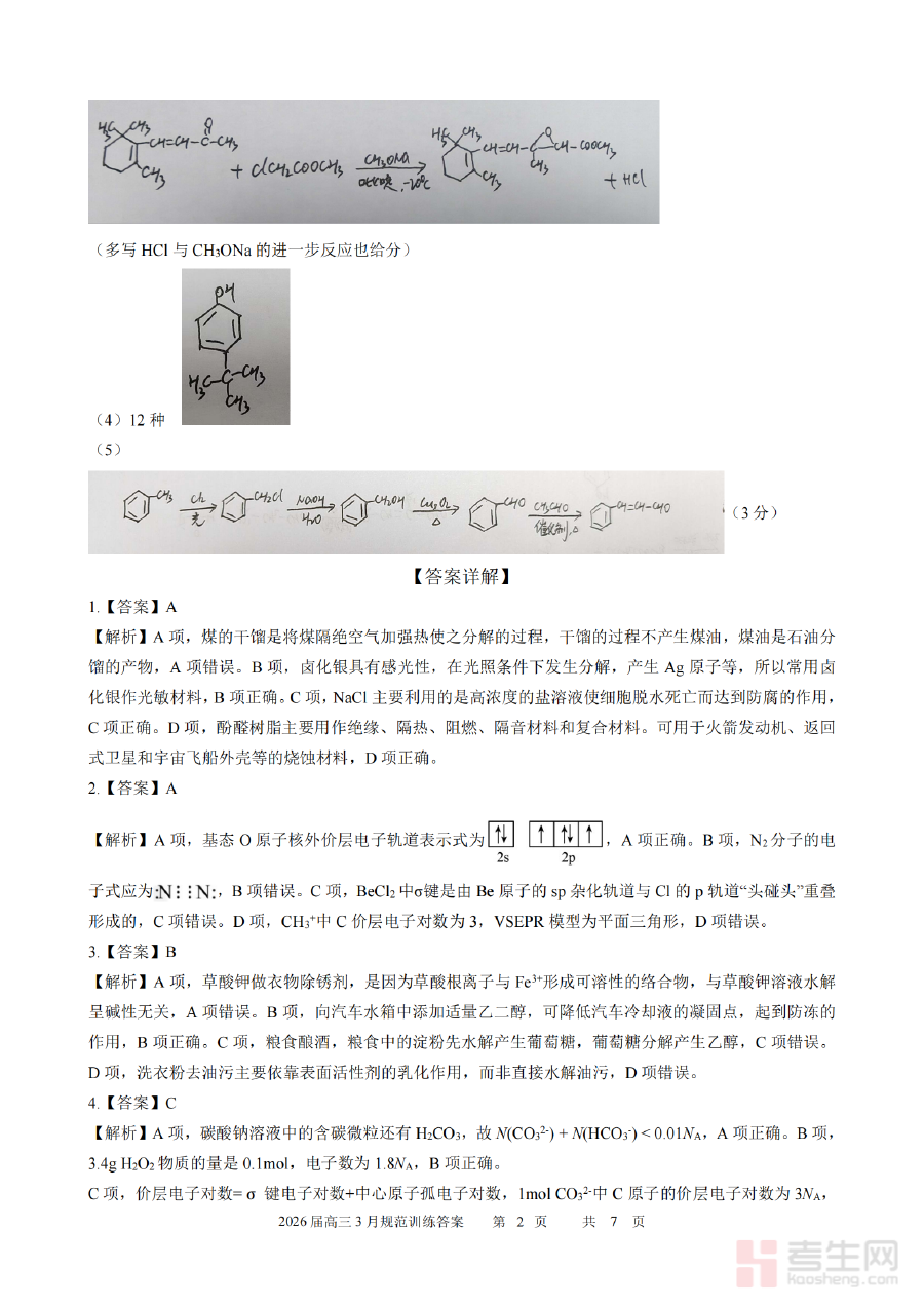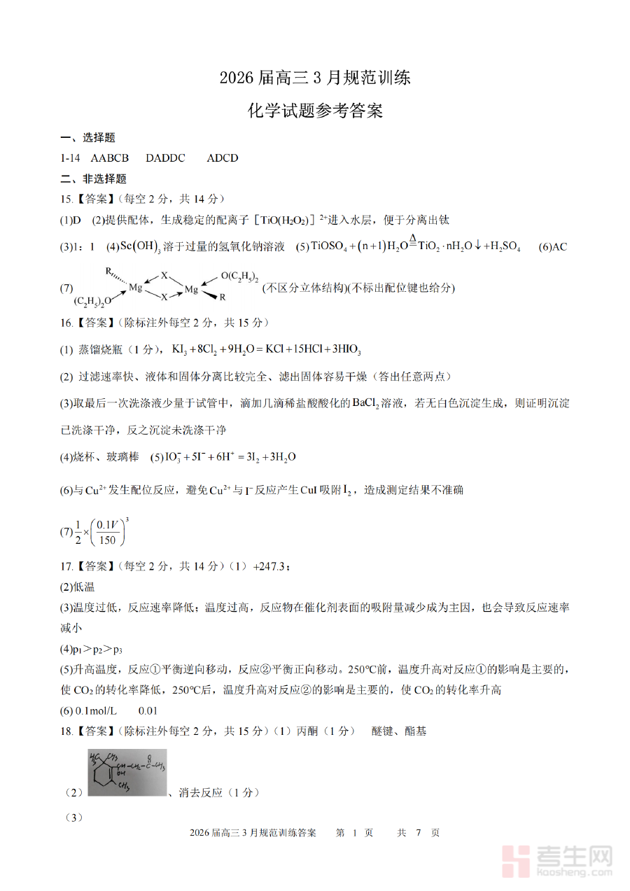 《安徽省合肥市一六八中学2026届高三3月份规范训练 化学答案》是安徽省合肥市一六八中学针对2026届高三学生3月份开展的化学学科规范训练所配套的官方答案资料。该资料与学校高三年级月度规范训练的化学试题直接对应,符合高三化学备考阶段的训练目标,为学生和教师提供了准确的解答参考,是高三化学阶段性备考过程中的重要辅助材料,能够帮助师生及时获取训练结果的权威依据。