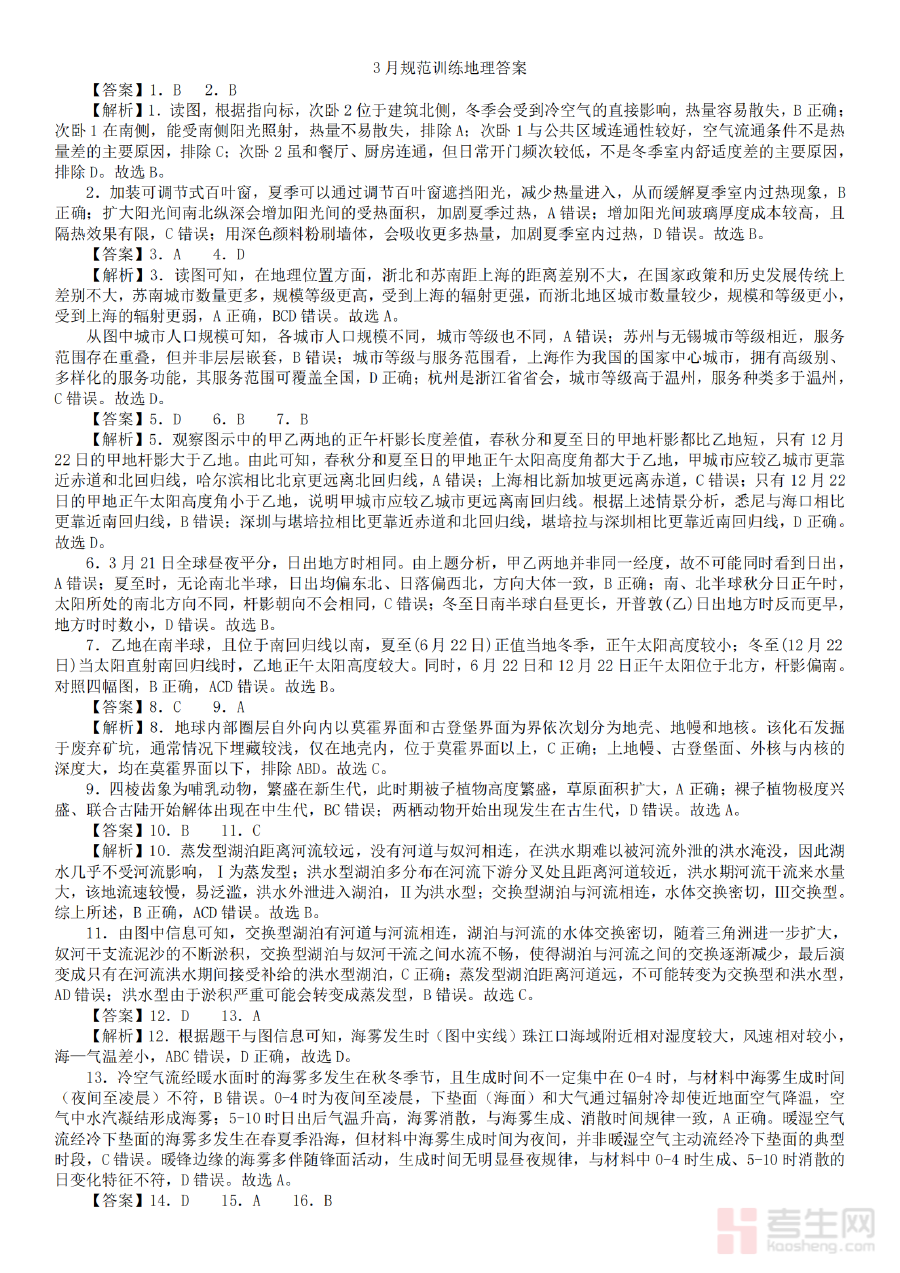 《安徽省合肥市一六八中学2026届高三3月份规范训练 地理答案》是安徽省合肥市一六八中学针对2026届高三学生设计的地理学科阶段性训练配套参考答案资料。该资料紧密贴合学校高三年级3月份的教学进度与规范训练安排,旨在为学生提供准确的训练结果核对依据,帮助学生快速了解自身在地理学科训练中的答题情况,为后续的学习调整提供清晰方向。