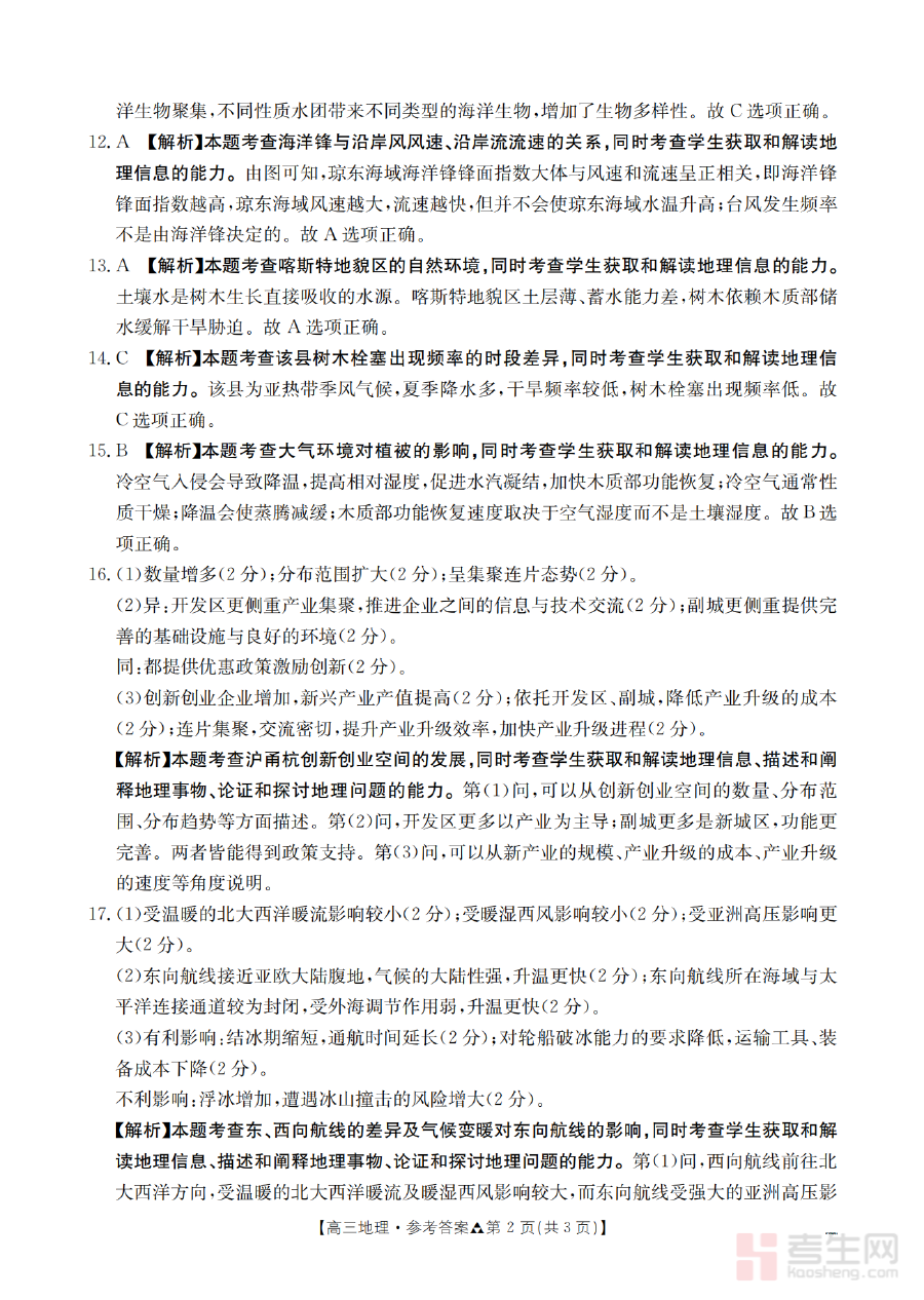 本资料主要适用于陕西省2026届高三学生进行自我学习效果的阶段性评估,也可作为地理教师开展教学反馈与教学优化的参考工具。合理运用该答案资料,能够有效强化高三地理备考过程中的阶段检测价值,助力学生精准调整备考策略,为高考地理科目的高效备考奠定坚实基础。