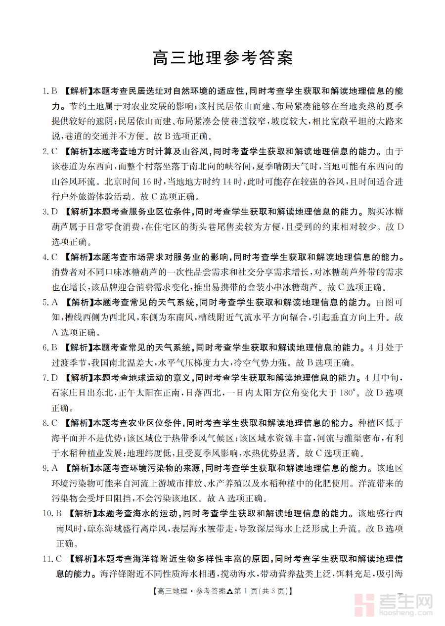 作为联考地理科目的答案参考资料,其核心用途在于帮助使用者快速核对答题结果,准确识别地理学科学习中的薄弱环节与知识盲区,为后续的备考规划提供清晰的方向指引。同时,该资料也能辅助教师进行学情分析,为教学策略的调整提供实际依据,提升教学与备考的针对性和有效性。