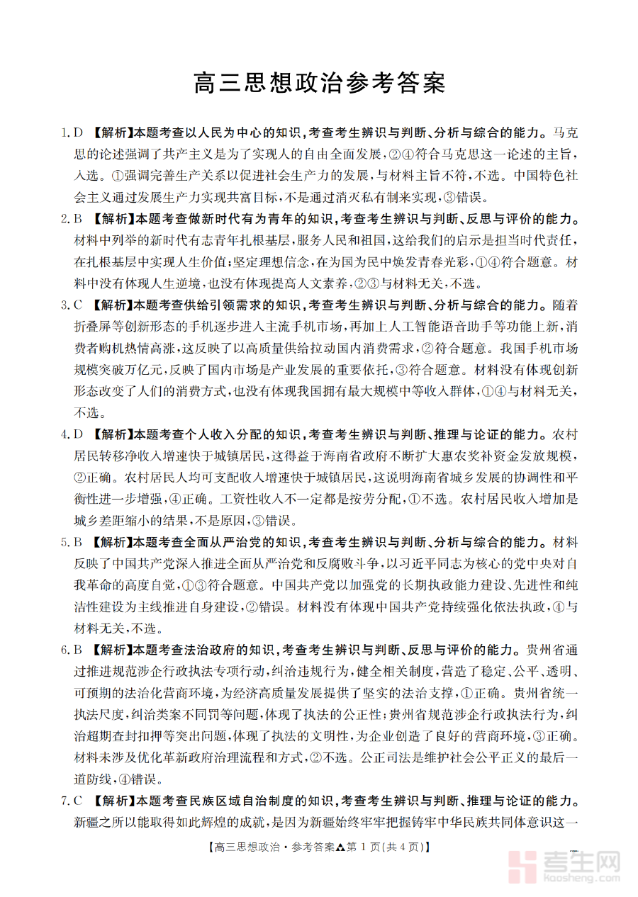 《陕西省2026届高三下学期3月联考(26-287C)政治答案》是针对陕西省区域内2026届高三学生在高三下学期3月举行的联考所配套的官方或权威政治学科参考答案资料,属于高三阶段重要的区域性阶段性考试辅助备考资源。