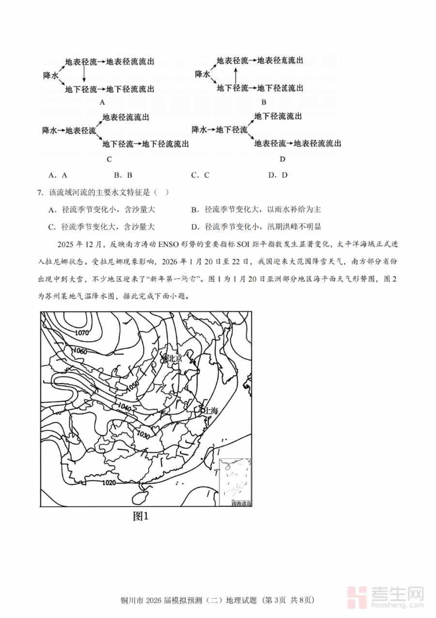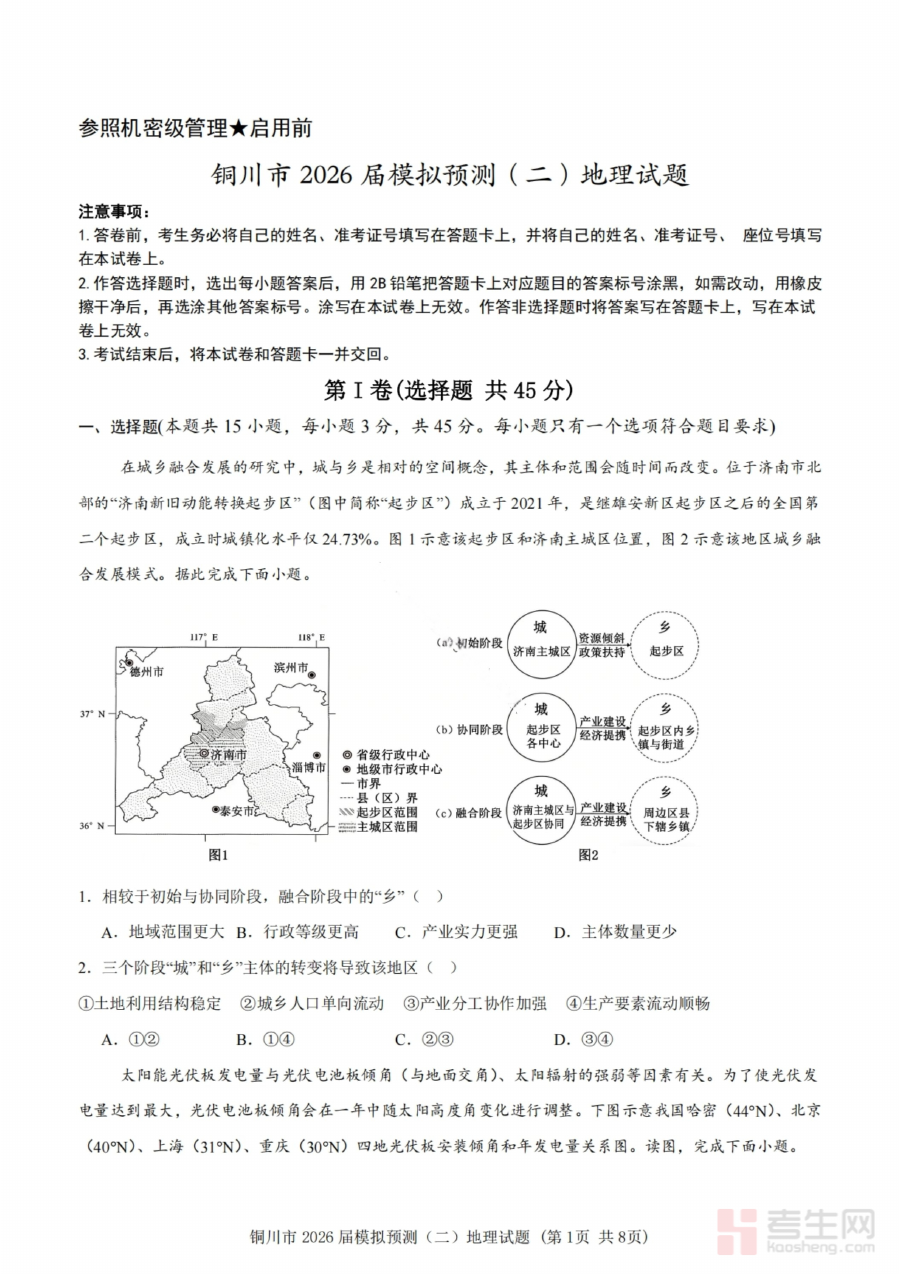 本试卷适用于铜川市2026届高三学生及地理学科教师。对于学生而言,完成该试卷可实现对自身地理知识掌握情况的全面阶段检测,明确后续复习重点方向;对于教师而言,可通过分析试卷结果精准把握班级整体学习状态,优化教学方案与辅导策略。它在高三备考关键阶段起到连接日常教学与最终考试的纽带作用,帮助师生精准把控备考节奏,提升复习效果与应试信心。