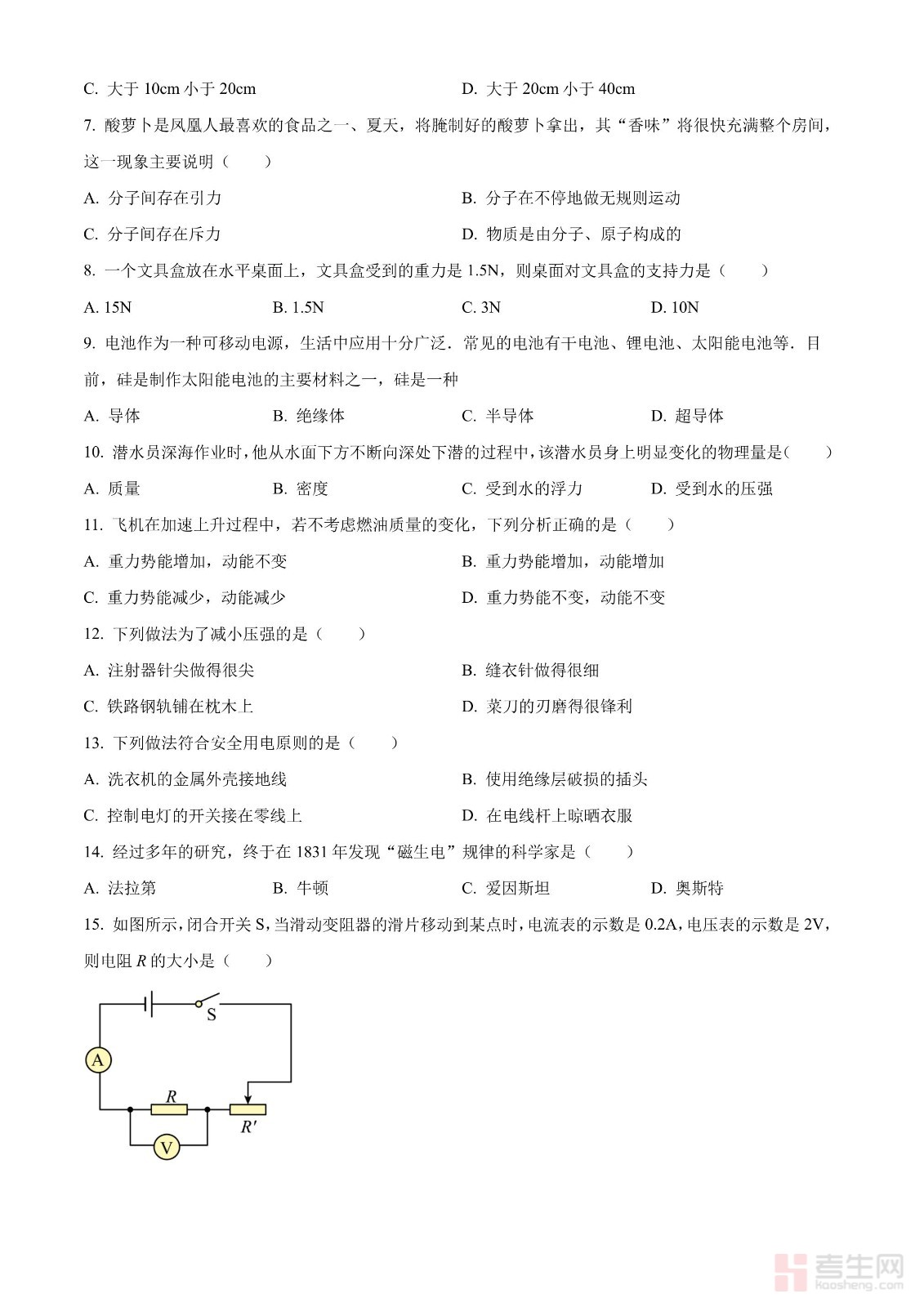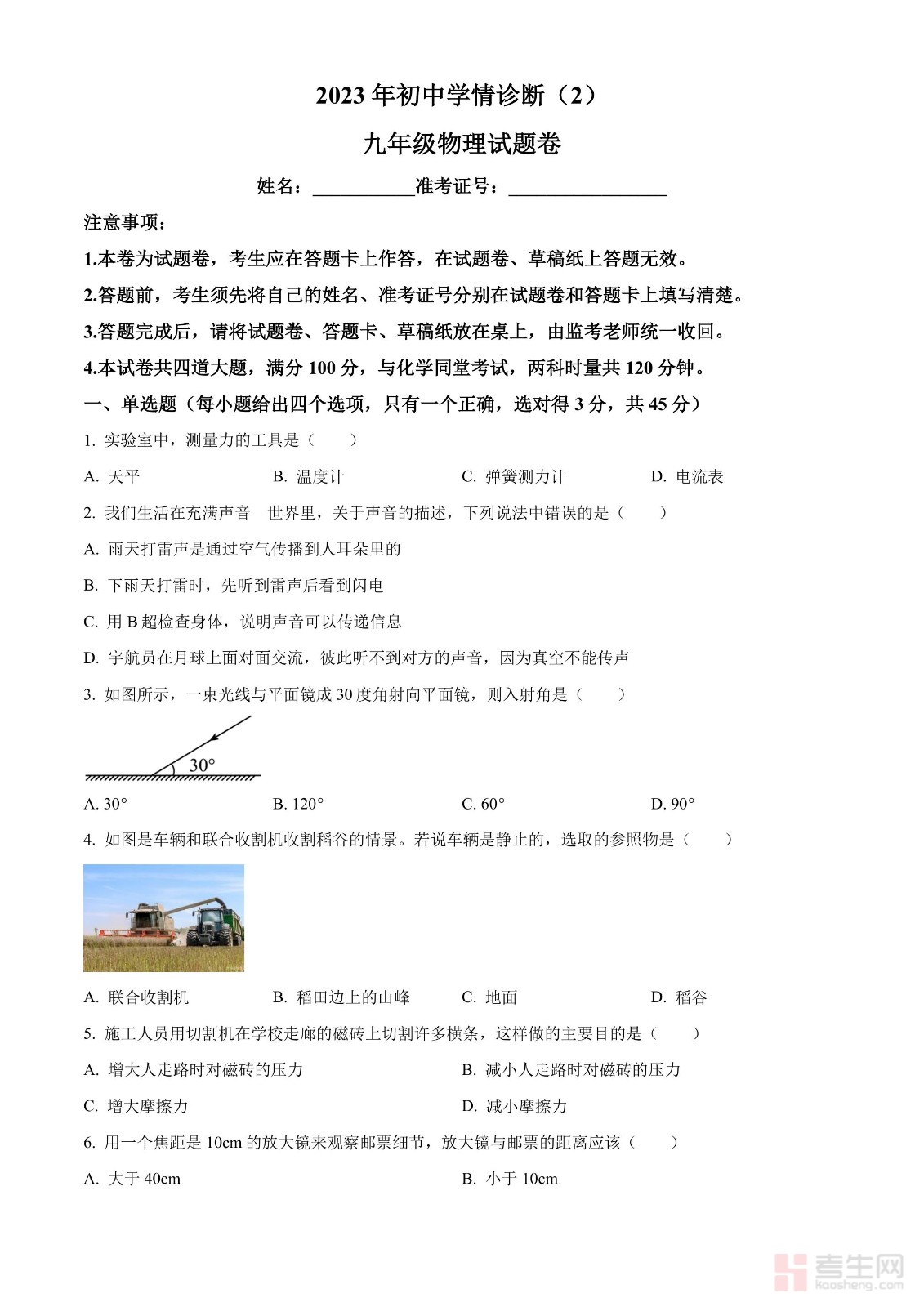 湖南省湘西凤凰县 2022-2023学年九年级下学期初中学情诊断物理试题(2)(原卷版)