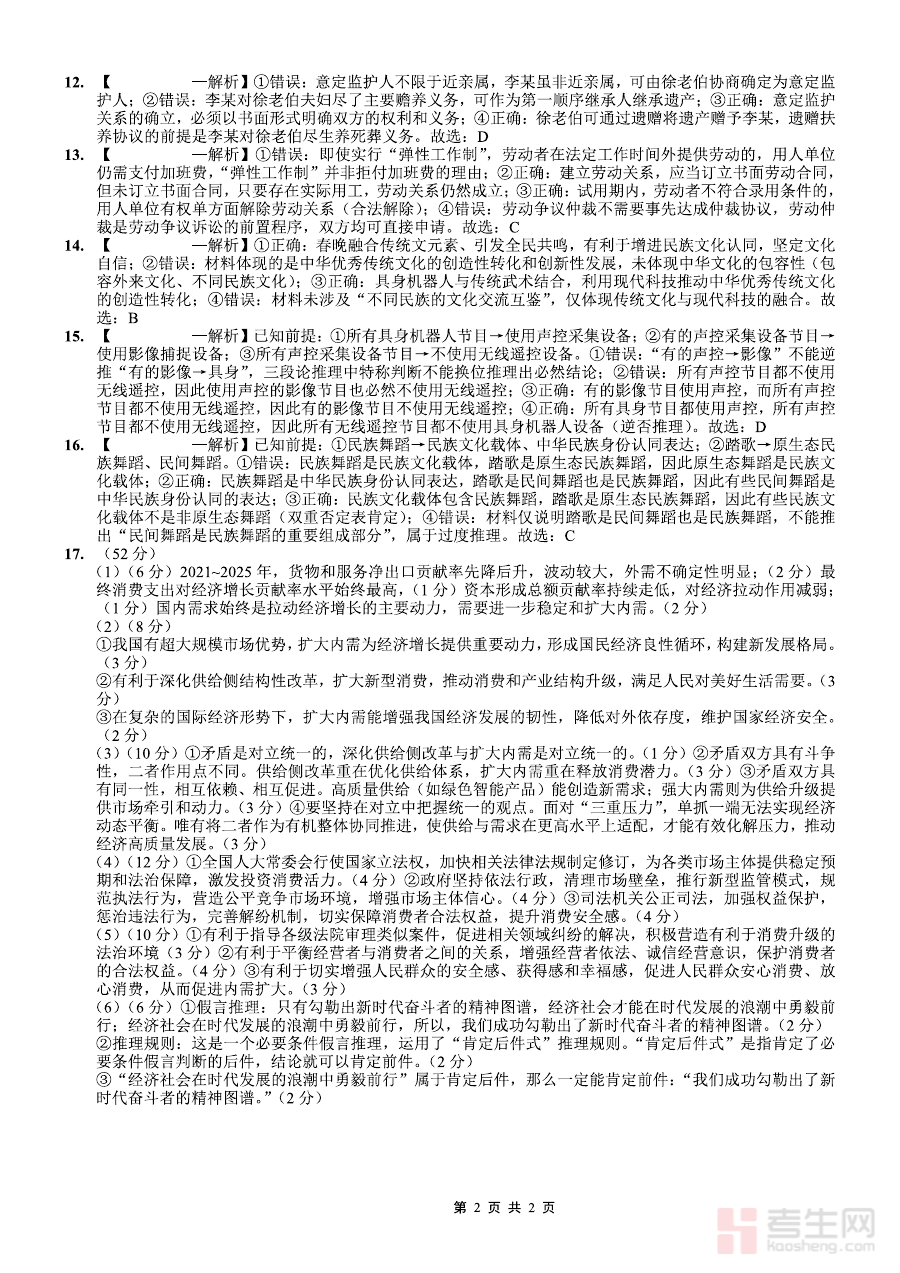 这份答案资料的核心用途在于支持学生完成本次月考政治科目的自我评估与学情诊断。通过对照答案,学生可清晰识别自身在政治学科知识掌握、答题逻辑与规范等方面的不足;教师则能借助该资料开展精准的试卷讲评,调整后续教学计划,为学生的备考规划提供数据支撑,确保教学方向与学生实际需求高度契合。