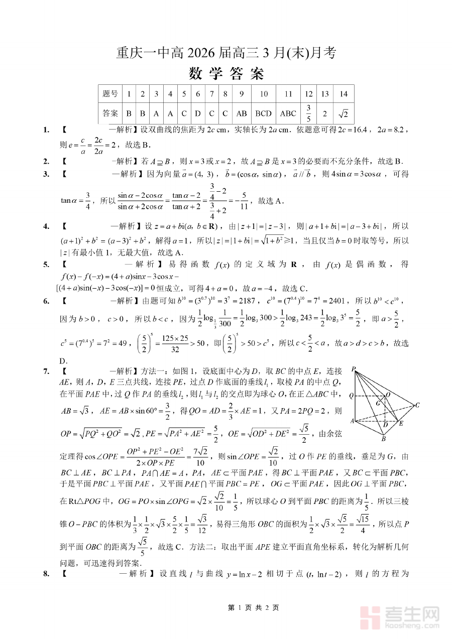 《重庆一中高2026届高三3月(末)月考数学答案》是重庆地区重点中学重庆一中针对高2026届高三学生在3月末开展的阶段性月考数学科目的配套答案资料作为重庆一中高三备考体系中的关键组成部分属于高三年级高考备考过程中的重要阶段性检测资源该资料与重庆一中本次月考数学试题直接对应为学生和教师提供了本次考试数学科目的官方解答依据是高三阶段备考环节中不可或缺的辅助材料之一助力师生及时掌握阶段性学习成果与教学效果