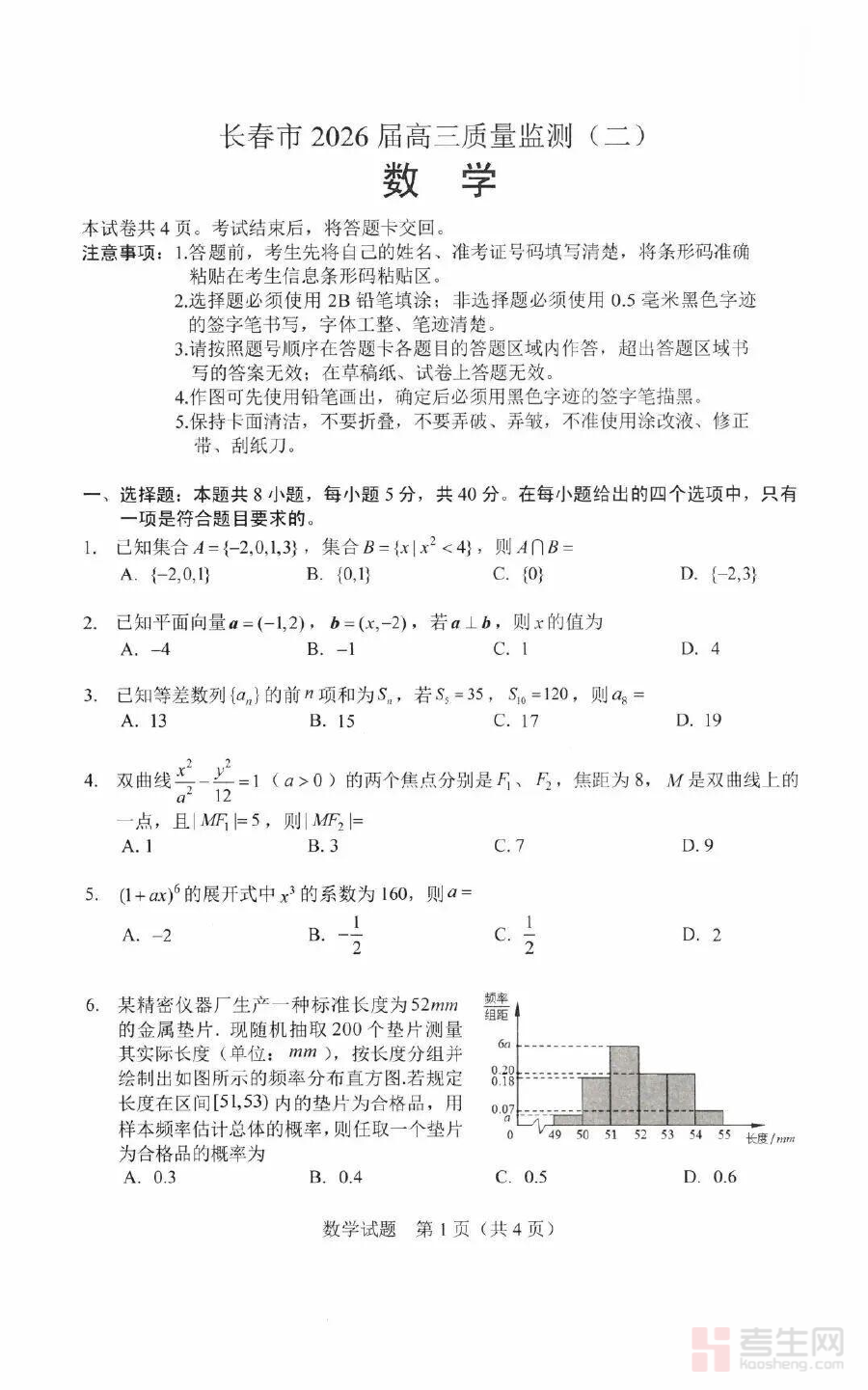 本资料主要适用于吉林省长春市2026届高三年级学生及数学学科教师。对于学生群体,它是进行阶段性自我评估与备考规划的重要工具,有助于精准定位复习重点、提高复习效率;对于教师群体,它是开展学情分析与教学调整的参考依据,能够辅助设计更具针对性的教学活动。其作为区域内权威的阶段性质量监测资料,对提升高三数学复习的科学性与有效性具有重要意义。