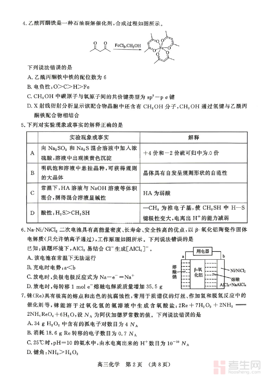 此试题资料可用于高三化学学科学习情况的精准诊断,帮助师生清晰把握当前阶段知识掌握程度与核心素养达成状况;同时为后续备考规划提供客观依据,助力师生调整复习策略、明确学习重点,确保备考方向与考试要求高度契合。