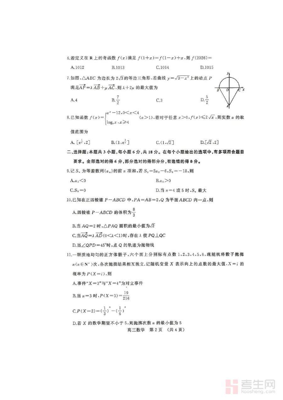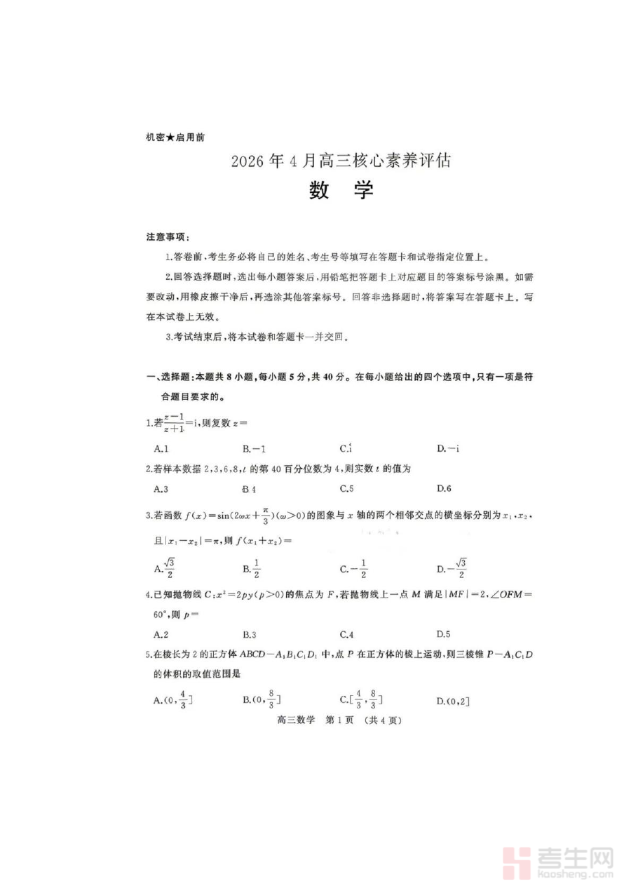 《山东名校联盟2026届高三下学期4月份核心素养评估考试数学试卷》是山东省2026届高三学生在备考关键阶段的重要评估资料,由山东名校联盟统筹推出,针对高三下学期4月份这一临近高考的复习节点设计,旨在通过标准化的评估形式,反映学生数学学科核心素养的发展状况。