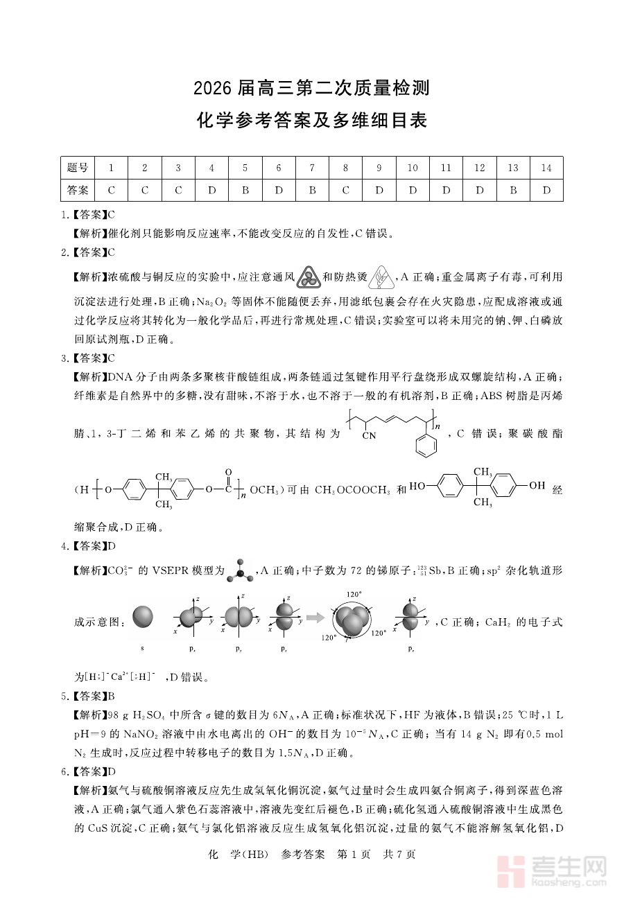 该资料可用于高三学生在完成阶段练习后核对作答结果,明确自身化学学习中的薄弱环节,同时也为教师开展学情分析、调整教学策略提供数据支撑,助力师生针对性优化备考方向,提升阶段复习的精准性与有效性。