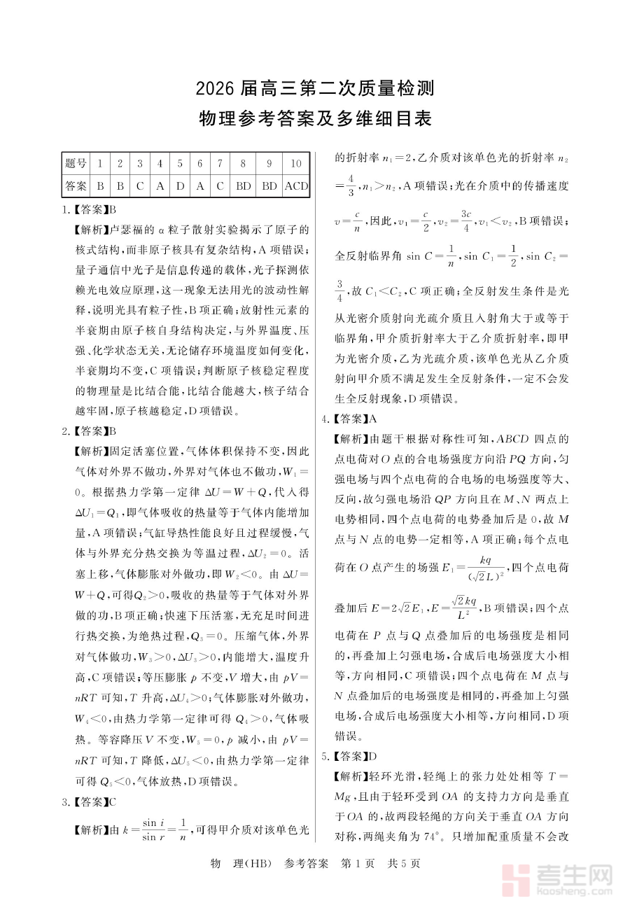 《八省T8联考2026届高三年级四月阶段练习 物理(HB)答案》是针对2026届高三年级参与八省T8联考四月阶段练习的湖北地区物理学科所提供的答案类备考资料。该资料依托八省T8联考这一区域性联合考试的阶段性练习场景,旨在为使用者提供对应练习的标准化解答参考,助力其完成对阶段练习成果的快速验证与系统梳理,是衔接高三物理阶段性复习与后续备考的重要辅助材料。