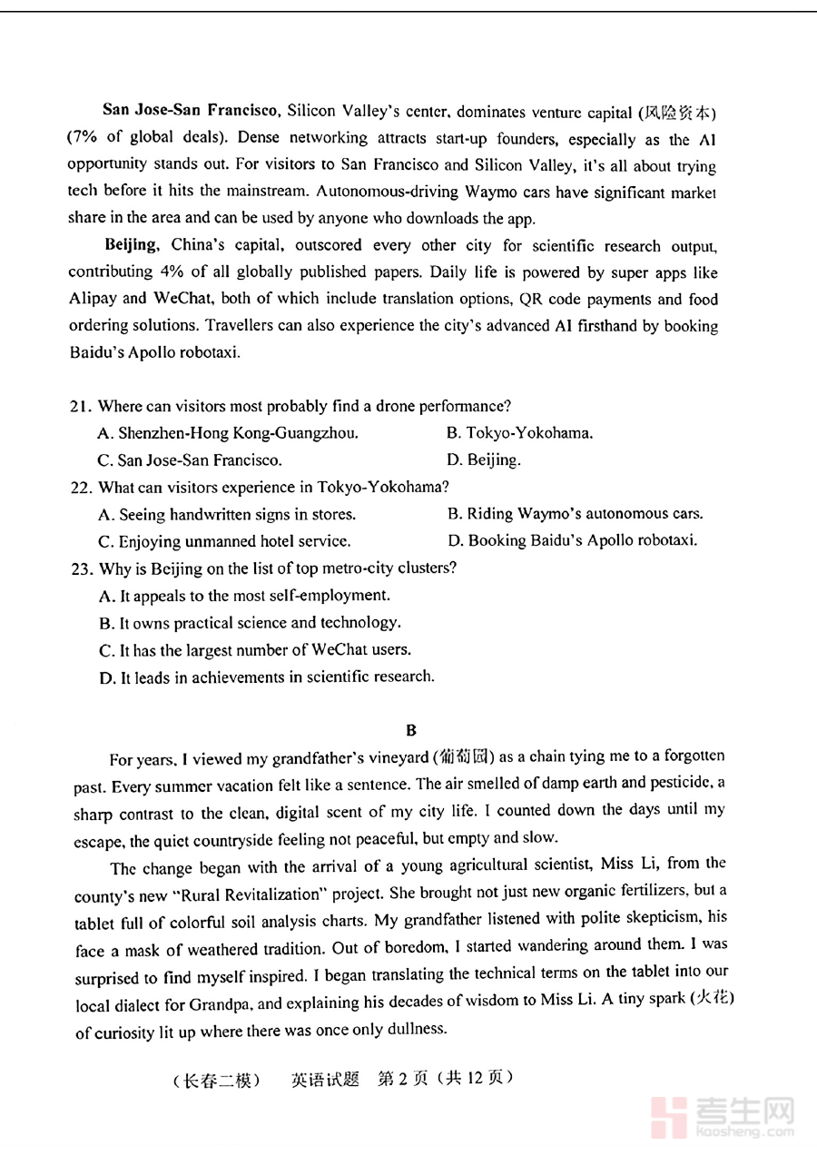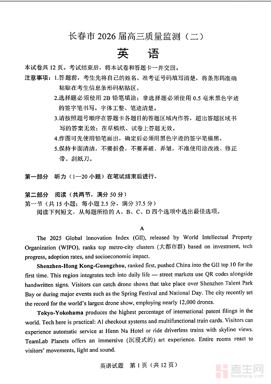 本资料主要适用于长春市2026届高三学生、高三英语教师及相关备考指导人员。对于学生而言,它是自我检测、查漏补缺、提升应试能力的有效工具;对于教师,它可作为教学评估、学情分析与备课参考的重要资源;对于备考指导者,它能辅助制定更具针对性与科学性的备考方案。在高三备考的关键阶段,这份质量监测资料能够帮助师生明确复习重点、优化备考路径,有效提升整体复习效率与备考效果。