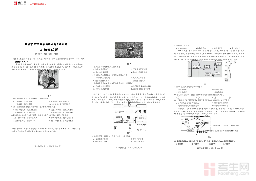 此资料主要适用于2026届安徽省铜陵、黄山、宣城三市的高三学生以及地理学科教师。对于学生而言,参与该检测能够有效检验自身二轮复习的成效,及时调整复习重点,增强备考的针对性与有效性;对于教师而言,该试题可作为阶段性教学质量评估的重要依据,助力教师更科学地指导学生进行高考前的冲刺准备,共同推动学生地理学科能力的全面提升。