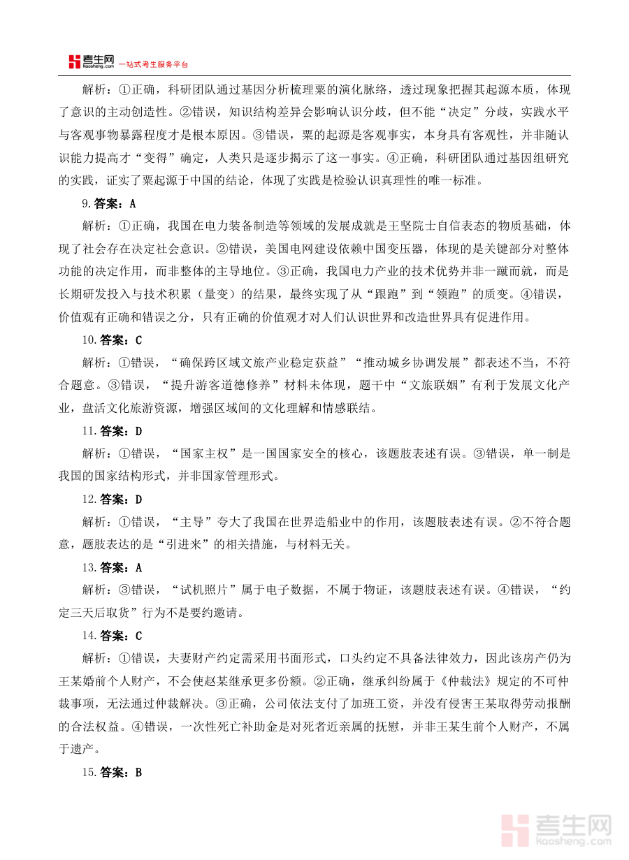 这份资料可用于高三政治学科阶段学习效果的诊断与分析,帮助使用者清晰把握自身对知识的掌握程度,为后续的备考规划提供明确方向。通过对照参考答案,使用者能够及时发现学习过程中的薄弱环节与知识盲区,从而有针对性地调整复习重点,提升备考的精准性与有效性。