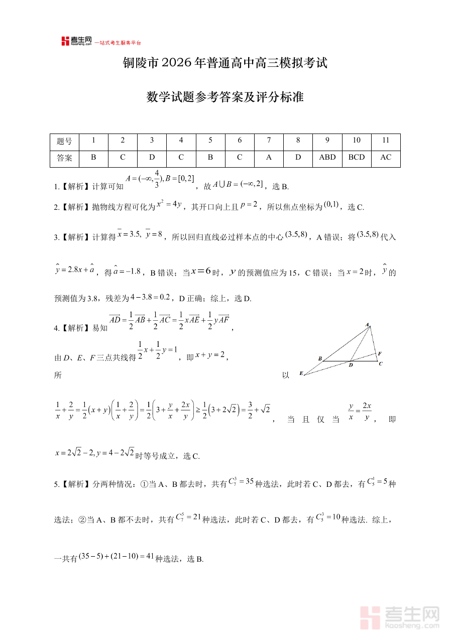 此参考答案适用于2026届安徽省铜陵、黄山、宣城三市的高三学生、数学教师及相关教育工作者,通过参考该资料学生可及时了解自身对数学知识的掌握程度,教师可据此开展针对性的教学指导与备考规划,助力提升区域高三数学备考的整体效率与质量。