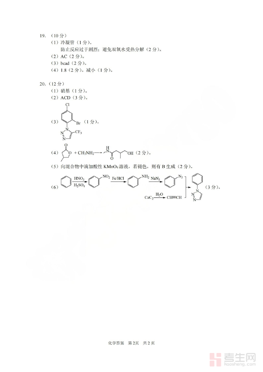 该答案资料可有效支持考生在完成模拟考试后的自我评估环节,通过核对答案及时发现自身在化学知识掌握、解题思路运用及答题规范等方面存在的短板;同时也为高三化学教师提供了教学反馈的核心依据,便于教师全面了解班级学生的学习状况与共性问题,进而调整后续的复习计划与教学策略,提升备考指导的针对性和有效性。