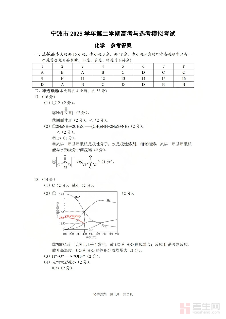 《宁波市2025学年第二学期高考模拟考试 化学答案》是宁波市在2025学年第二学期面向高三学生组织的高考模拟考试化学科目的配套答案资料,属于高三阶段高考化学备考体系中的重要组成部分。该资料严格对应本次模拟考试的考查范围与评分标准,能够为使用者提供精准的作答参考,帮助其快速把握本次模拟考试化学科目的命题方向与考查重点。