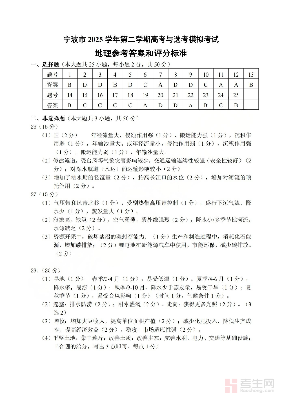 《宁波市2025学年第二学期高考模拟考试 地理答案》是针对宁波市2025学年第二学期组织的高考模拟考试所配套的地理学科答案资料。该资料对应宁波市区域内的高考模拟测试场景,结合当地高考备考进度与学科考查方向,为考生提供了与模拟考试直接匹配的答案参考,是高考地理备考过程中的重要辅助材料之一。