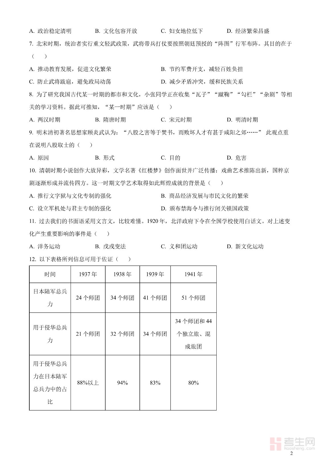 2023年湖北省宜昌市中考历史真题(原卷版)