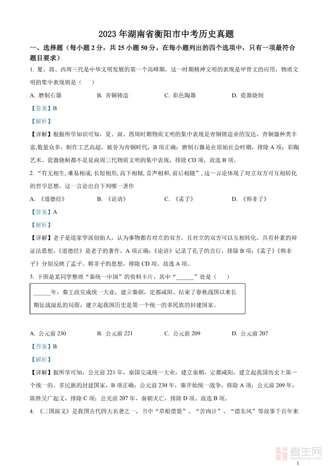 2023年湖南省衡阳市中考历史真题(解析版)