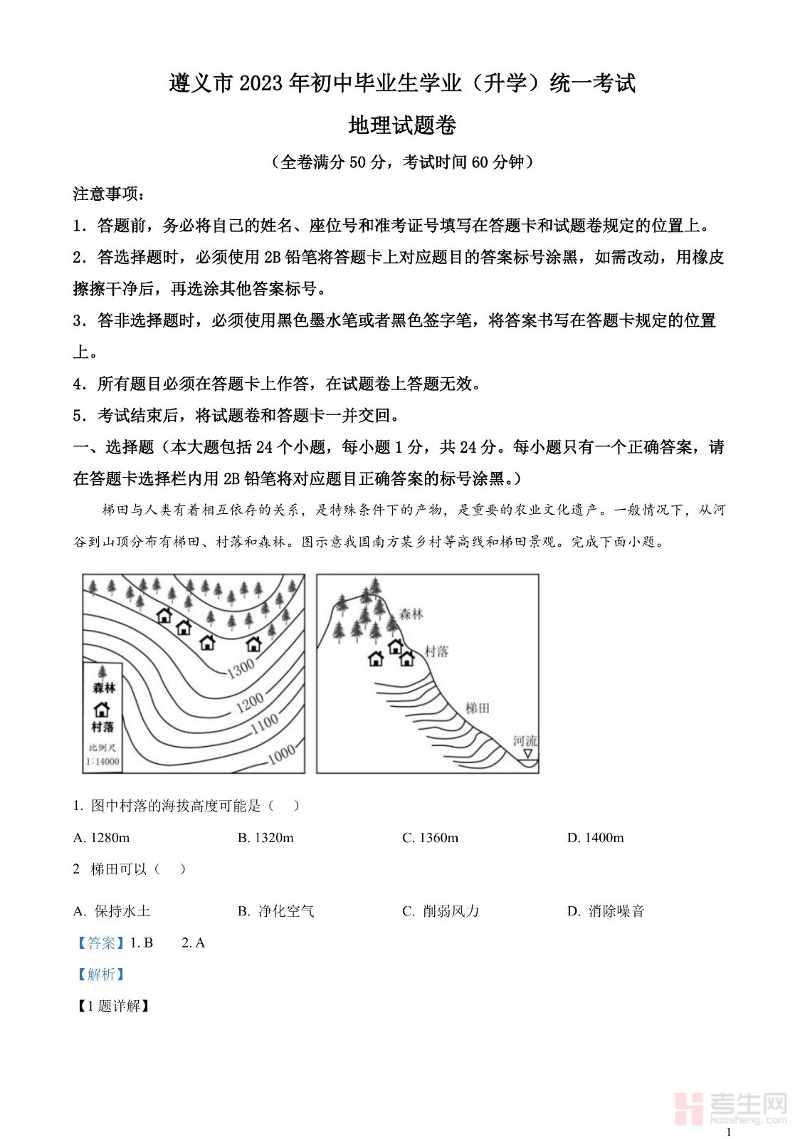2023年贵州省遵义市中考地理真题(解析版)