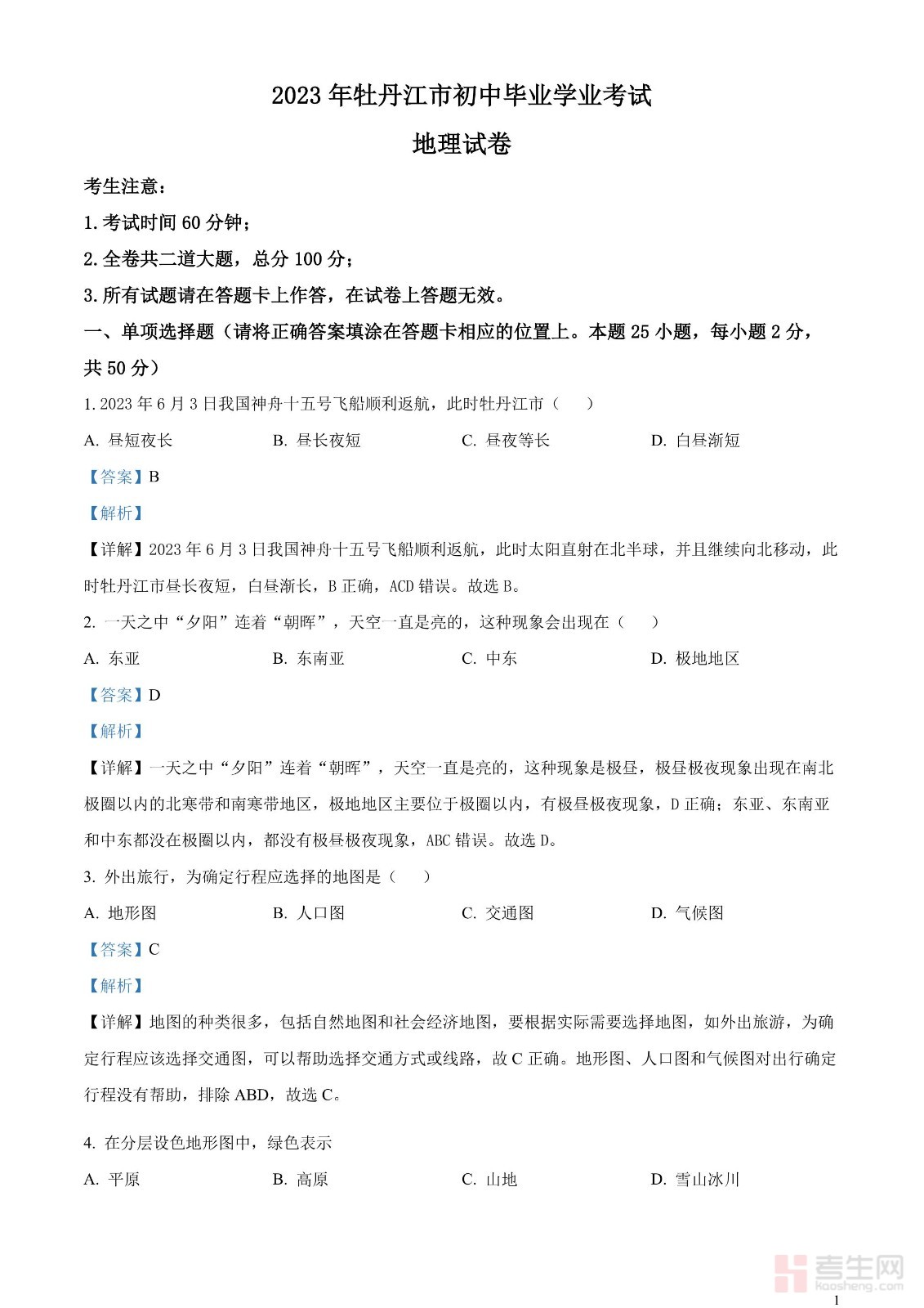 2023年黑龙江省牡丹江市中考地理真题(解析版)