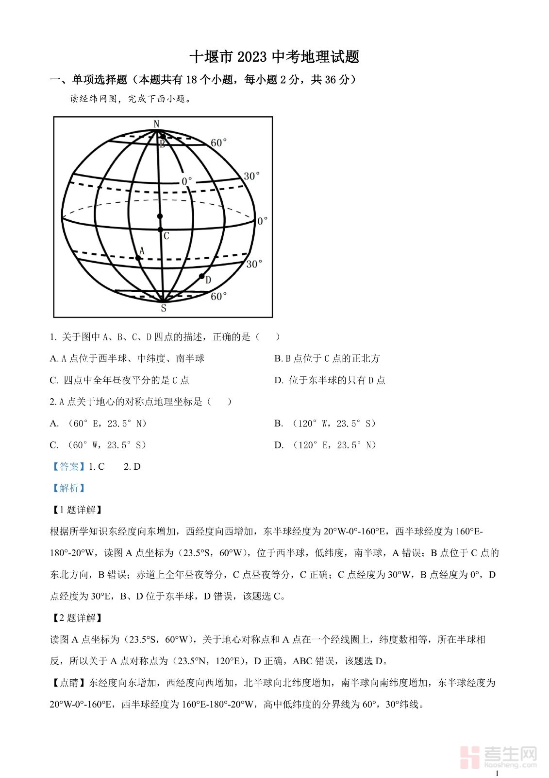 2023年湖北省十堰市中考地理真题(解析版)