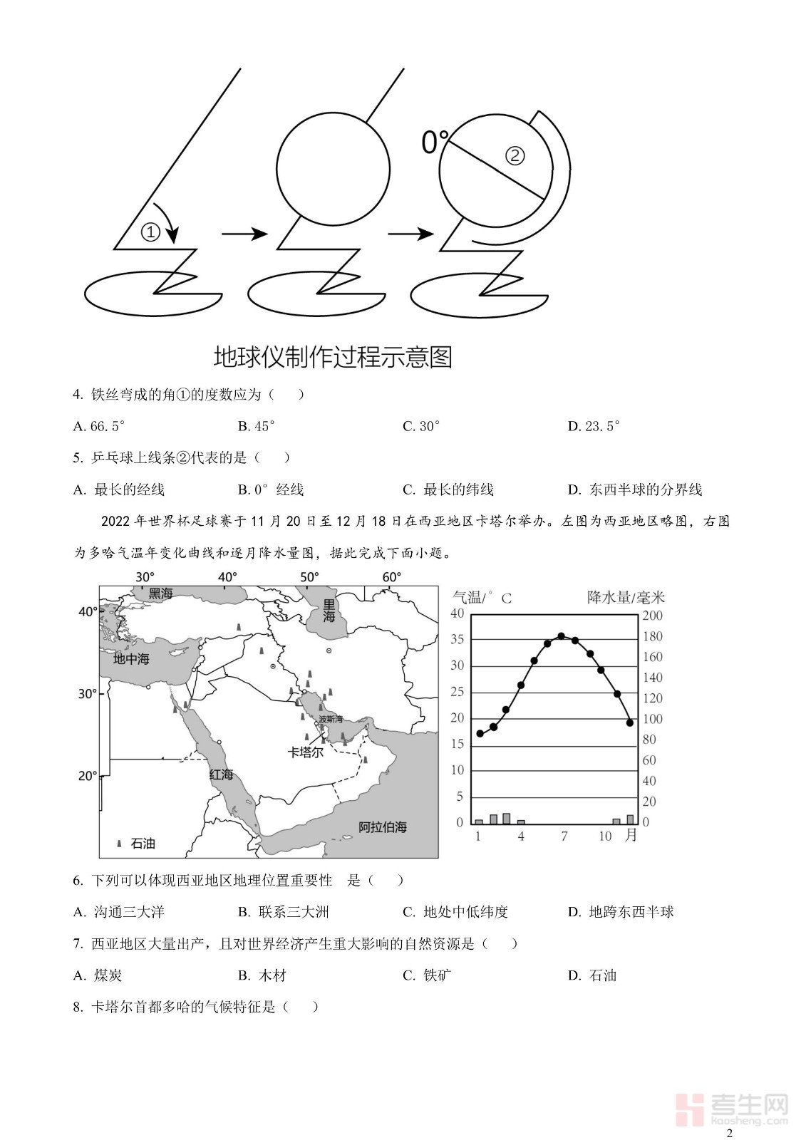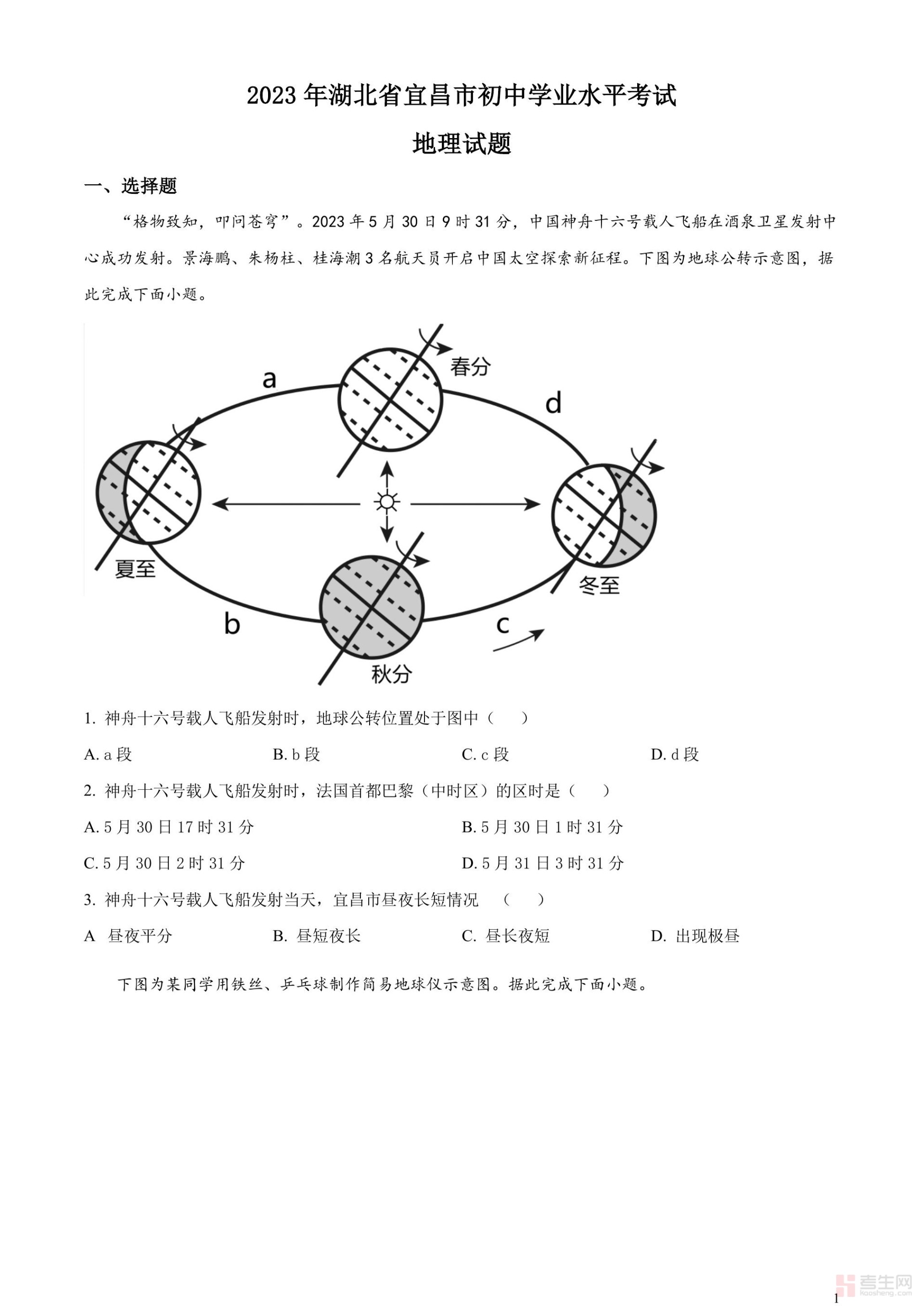 2023年湖北省宜昌市中考地理真题(原卷版)