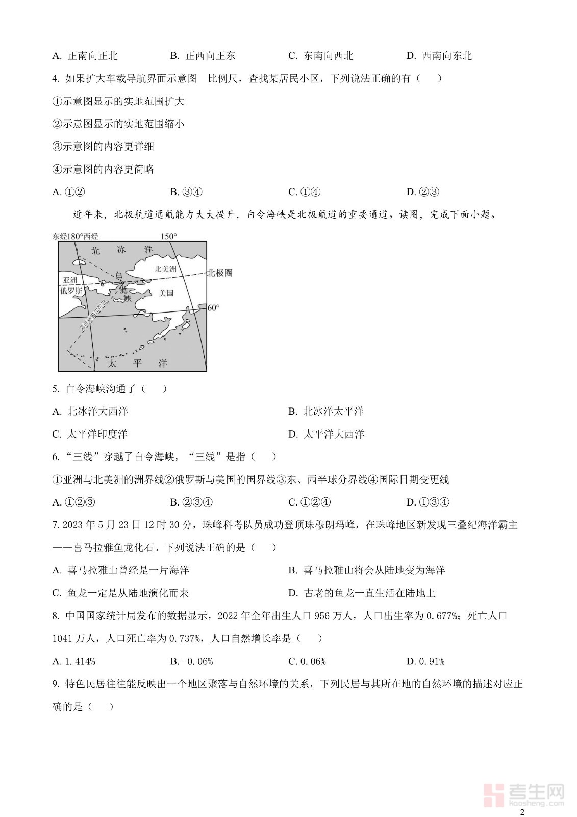 2023年湖南省衡阳市中考地理真题(原卷版)